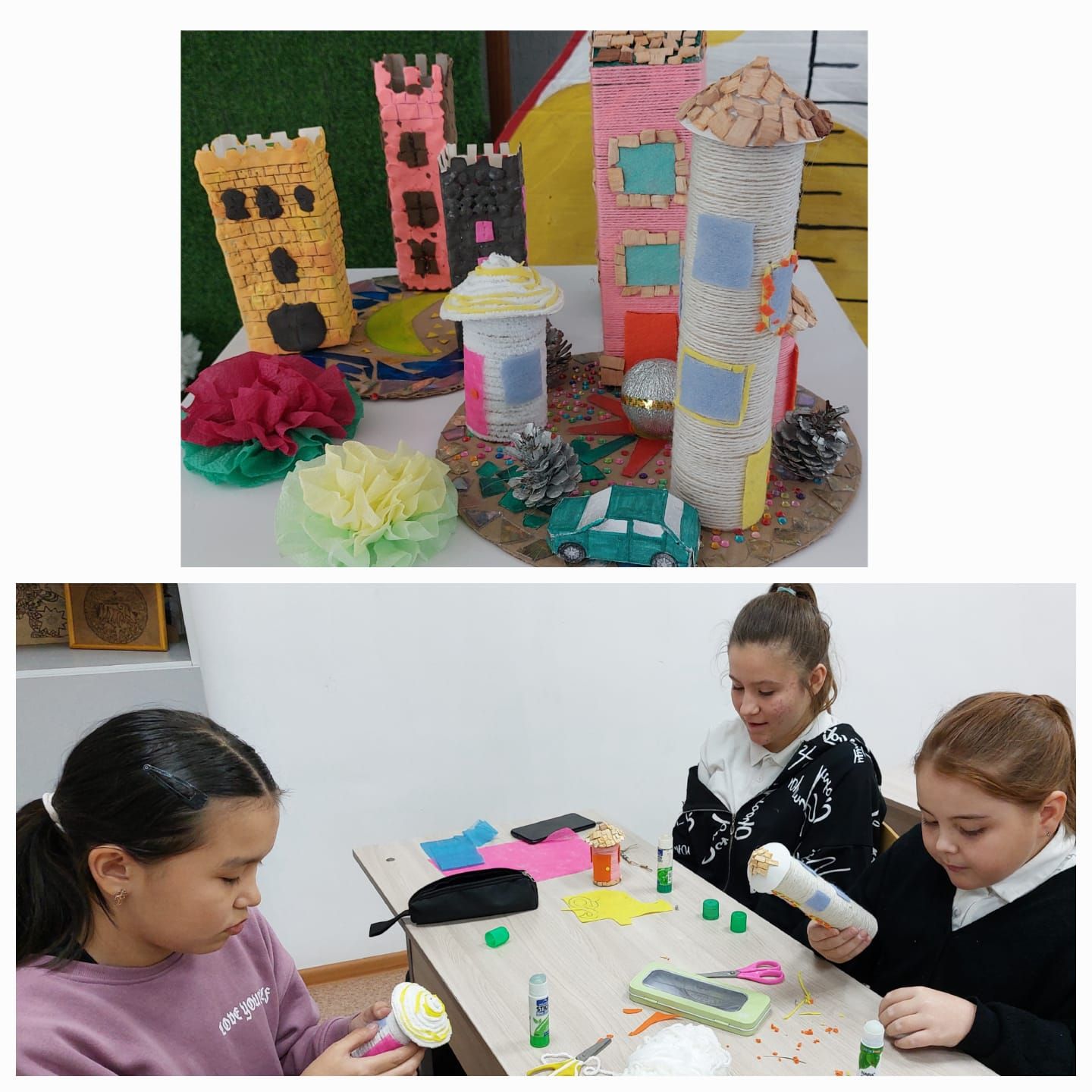 16 сәуір 2025 жылы «Қ. Аманжолова атындағы ЖББМ» КММ «Жасыл Қазақстан» экологиялық сауаттылық апталығы аясында көркем еңбек пәні мұғалімдері О.В. Щеглова, Т. А. Забусов…
