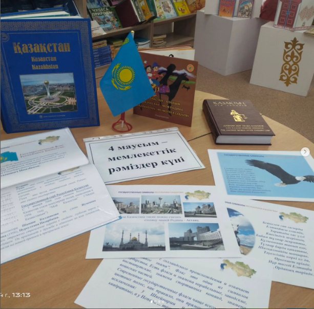 4-маусым Мемлекеттік рәміздер күніне орай, кітапханашылардың ұйымдастыруымен «Мемлекеттік рәміздер – ұлттық мақтанышымыз» атты кітап көрмесі өтті.