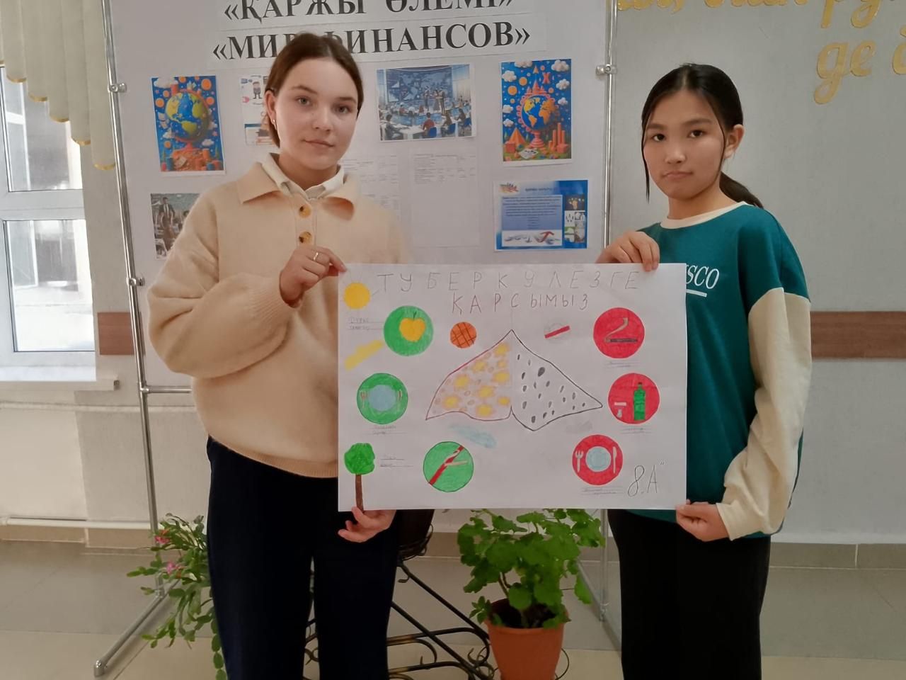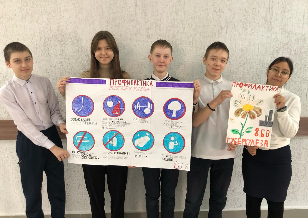 " Қасым Аманжолов атындағы ЖББМ" КММ-де туберкулездің алдын алу бойынша айлықты ( 20.02.25-20.03.25 бастап) өткізу шеңберінде 7-8 сынып оқушылары арасында "Туберкулезсіз әлем"тақ…