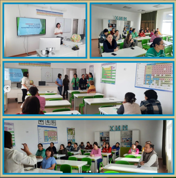 26 марта 2024 года Копбаева М.Е., школьный психолог КГУ «Общеобразовательная школа имени К.Аманжолова» провела школьный семинар для педагогов на тему: «Конфликт в школе. Пути вых…