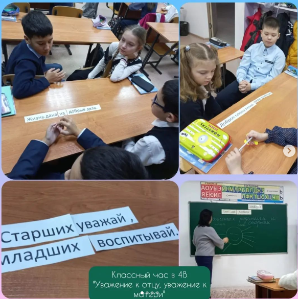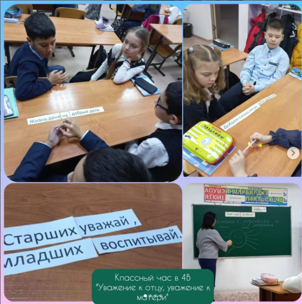 В рамках проекта "Еңбегі адал жас өрен" был проведен классный час "Честь отцу , уважение-матери".