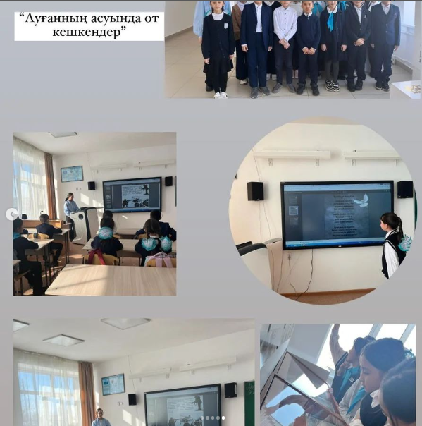 2024 жылдың 13 ақпанында "Қасым Аманжолов атындағы ЖББМ" кітапханашыларының ұйымдастыруымен Ауған соғысының аяқталғанына 35 жыл толуына орай,