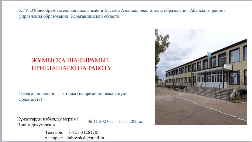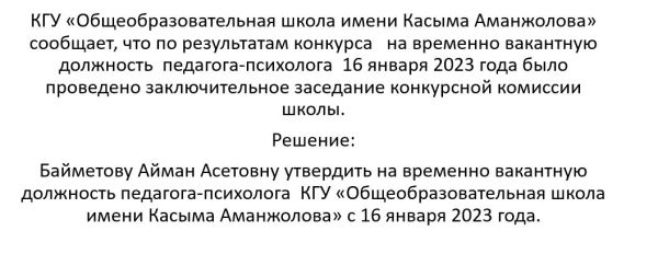 "Қасым Аманжолов атындағы жалпы білім беретін мектебі" КММ