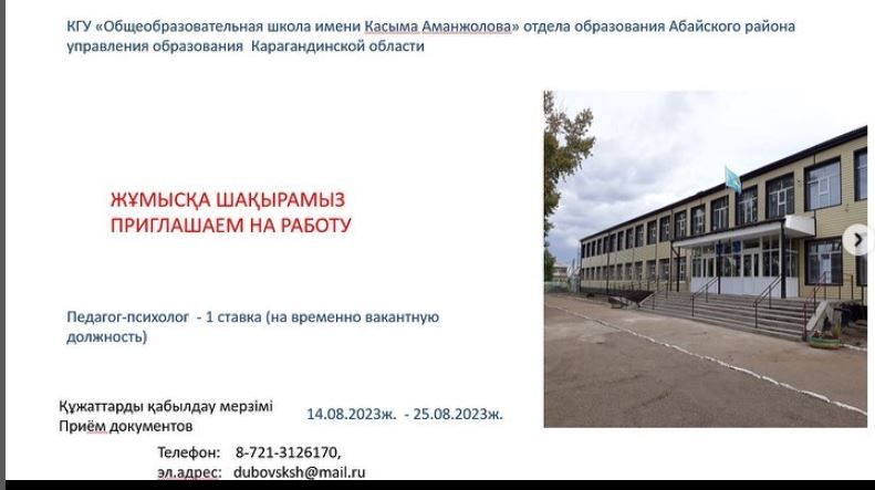 Организации> "Қасым Аманжолов атындағы жалпы білім беретін мектебі" КММ