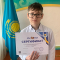 СЕРГЕЙ КУЗНЕЦОВ ученик 6 класса награжден сертификатом за участие в математической Олимпиаде «Алтын сақа”