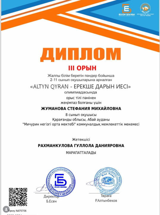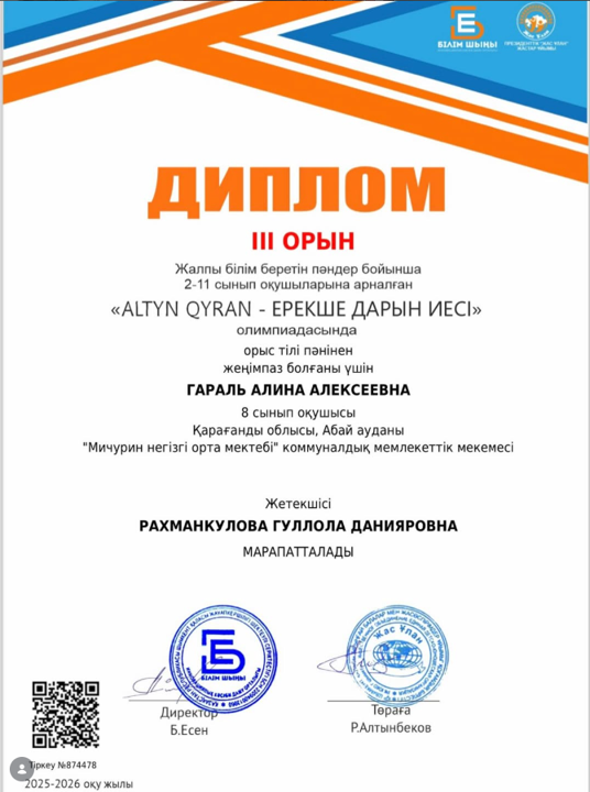 «ALTYN QYRAN-ОБЛАДАТЕЛЬ ОСОБОГО ТАЛАНТА»
