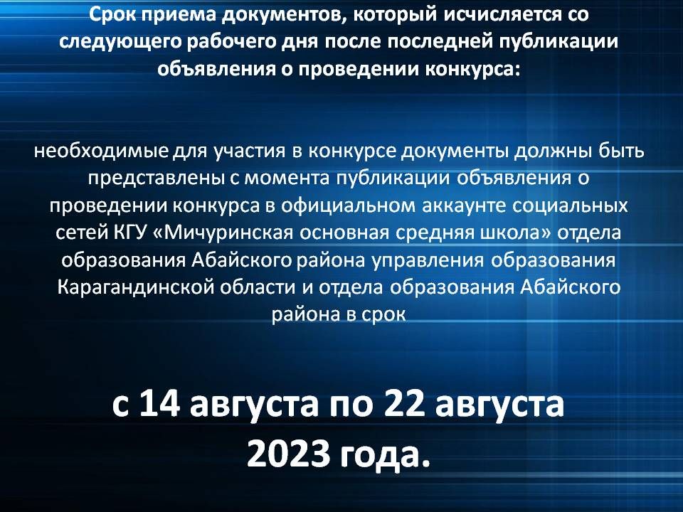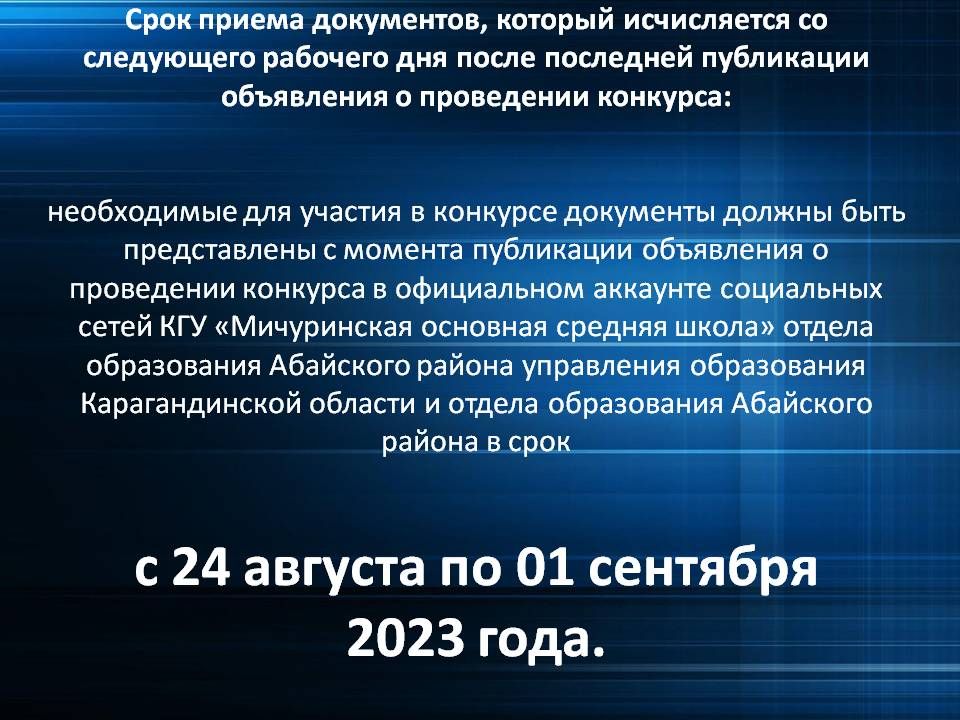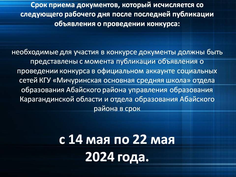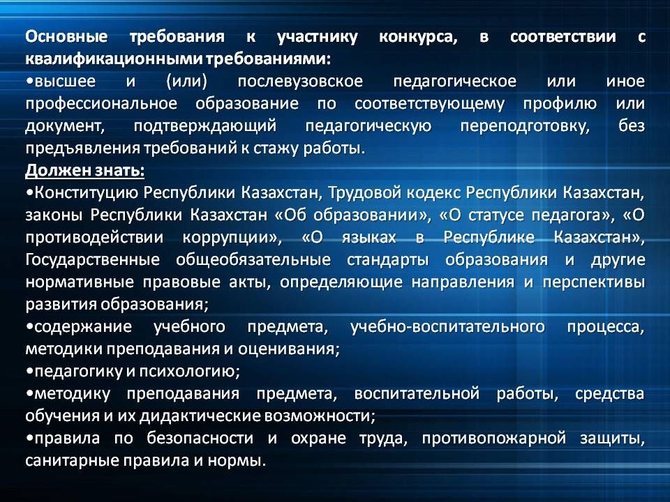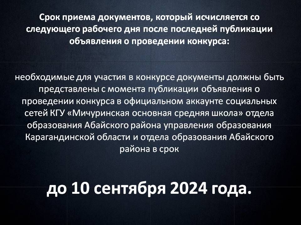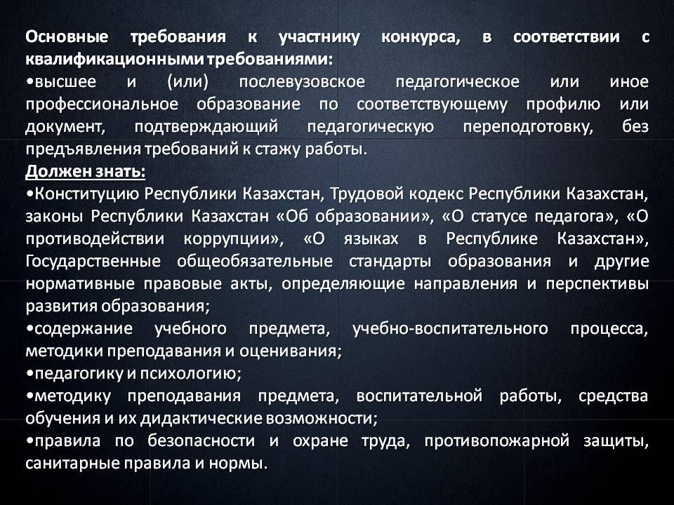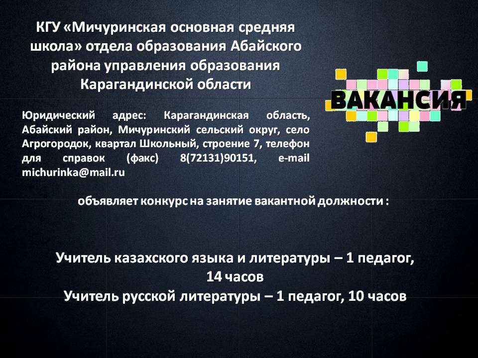 Конкурс на замещение вакантной должности учителей казахского и русского языка