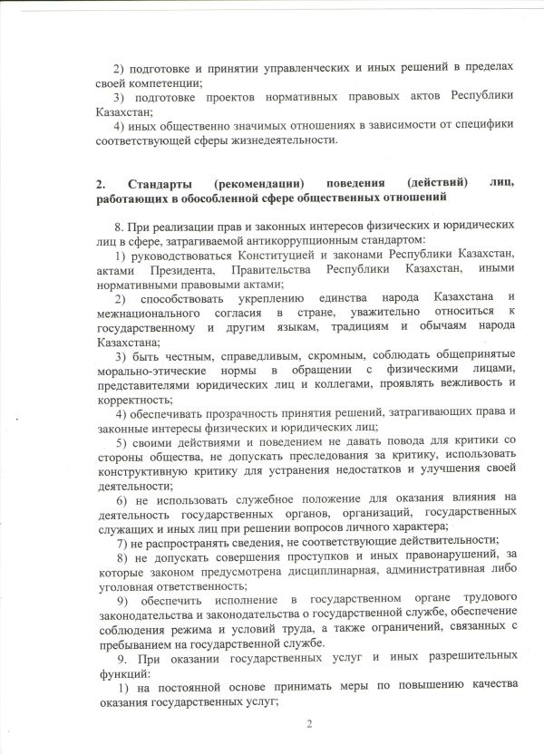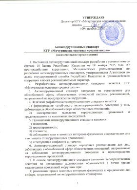 Антикоррупционный стандарт КГУ "Мичуринская основная средняя школа"
