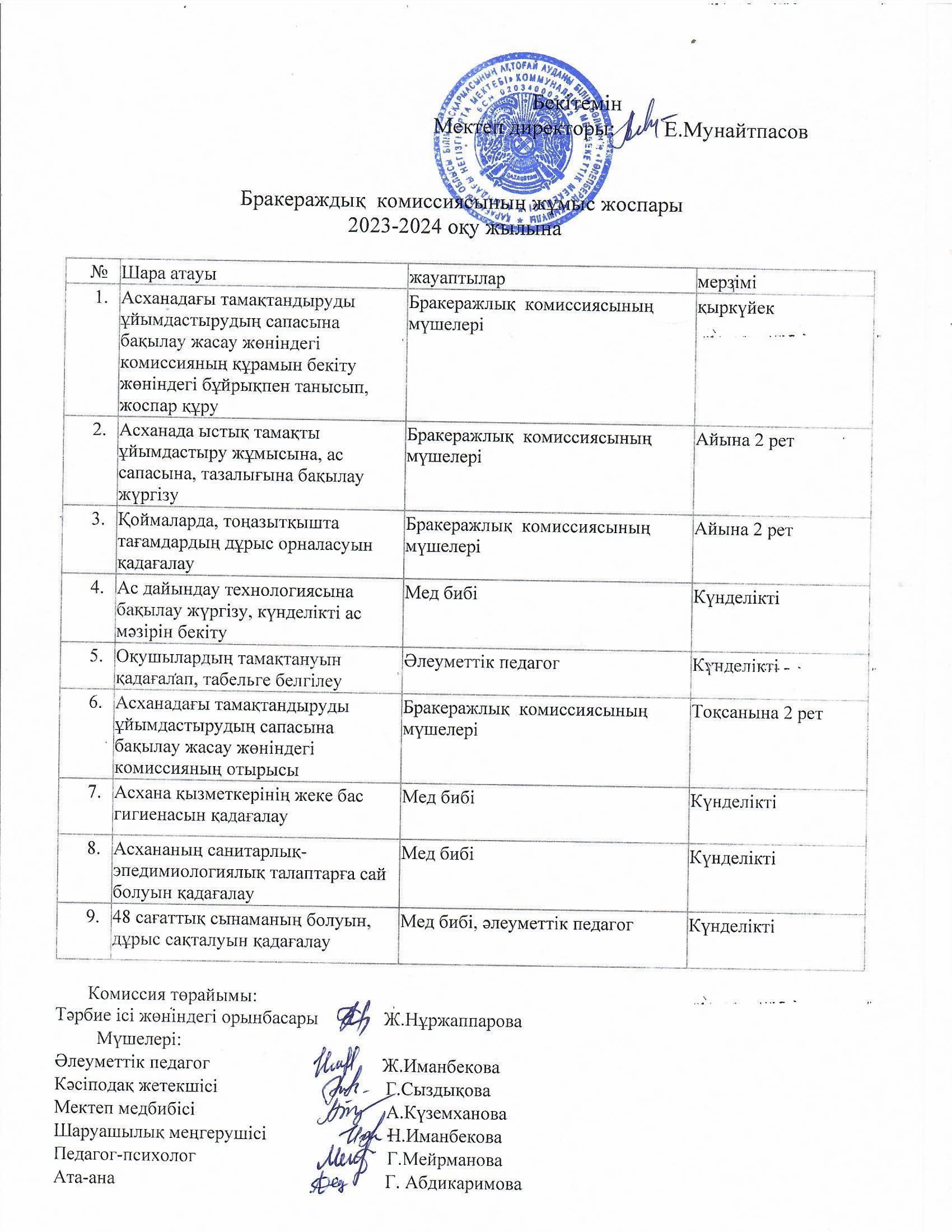 Бракераж комиссиясының жұмыс жоспары