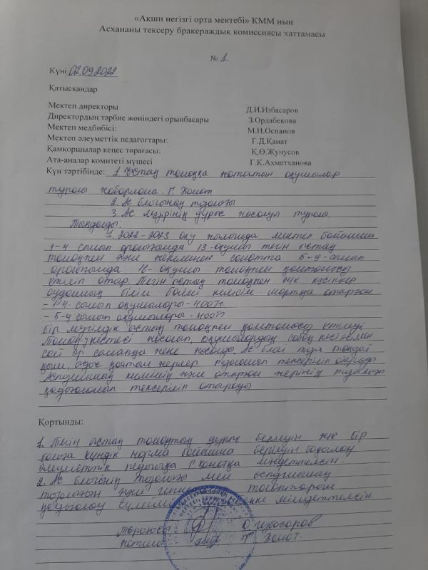 Мектеп асханасында 2022-2023 оқу жылында жалпы барлығы 28 бала тамақтанып отыр.