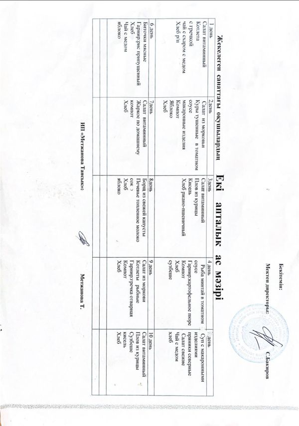 Мектептен тамақтандыруды ұйымдастыратын жауапты тұлғаның байланыс декректері