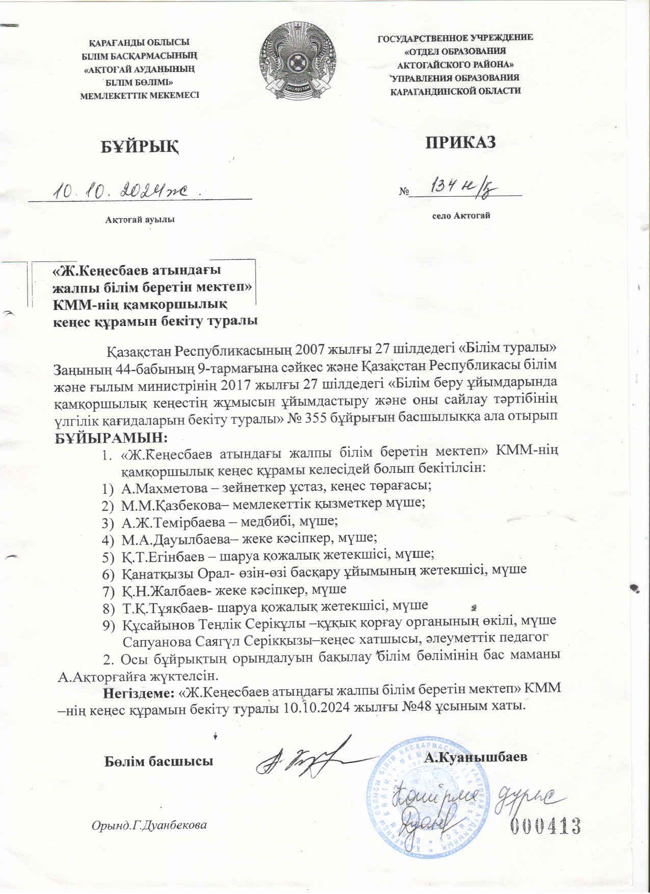 Қамқоршылық кеңес құрамын бекіту туралы бұйрығы
