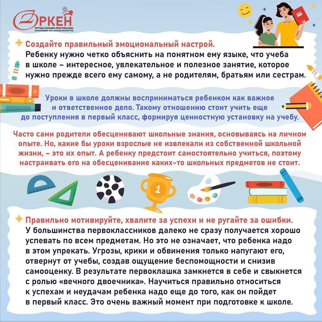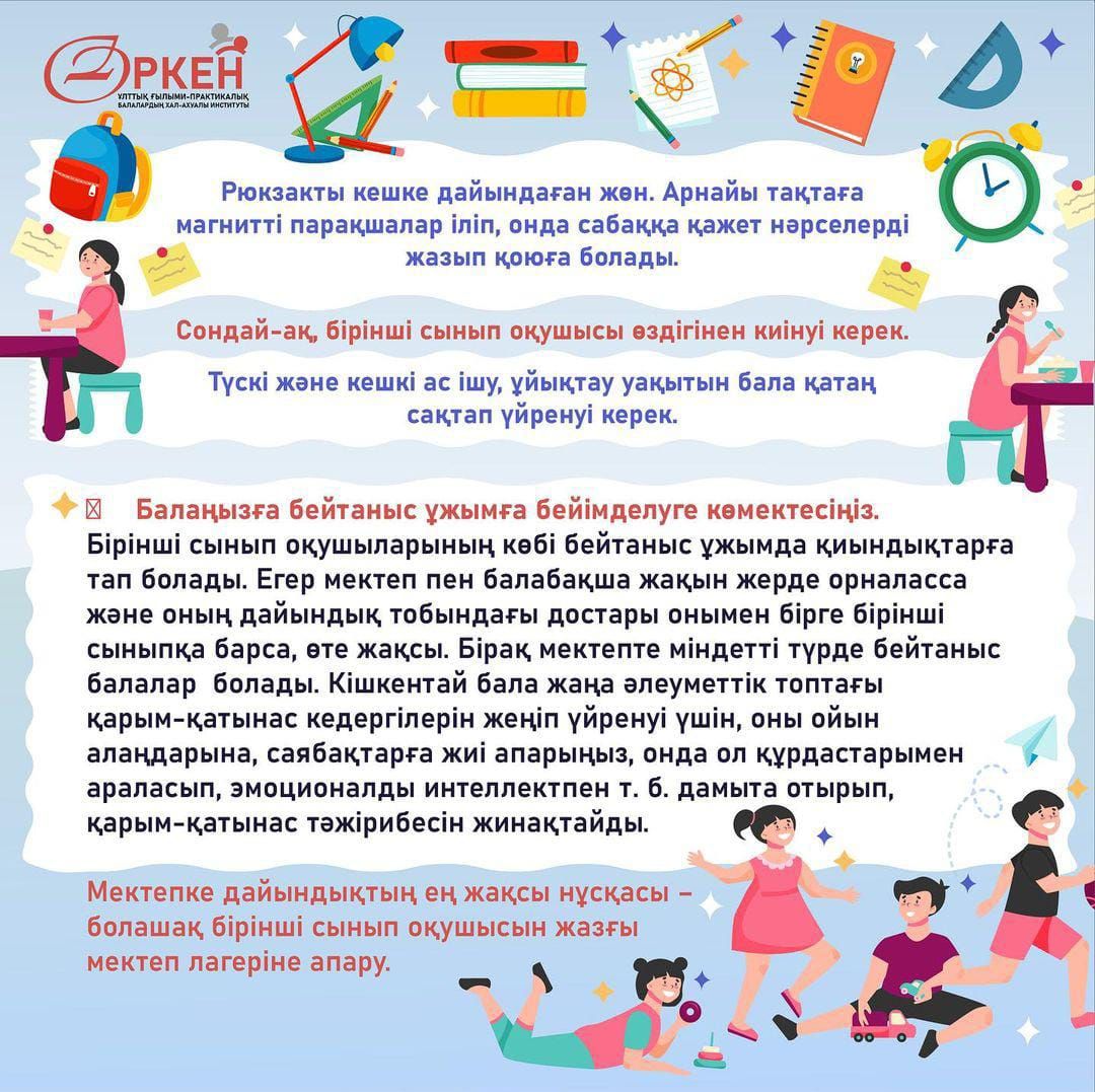 Мектепке қуанышпен! Бірінші сынып оқушыларының ата-аналарына арналған ұсыныстар