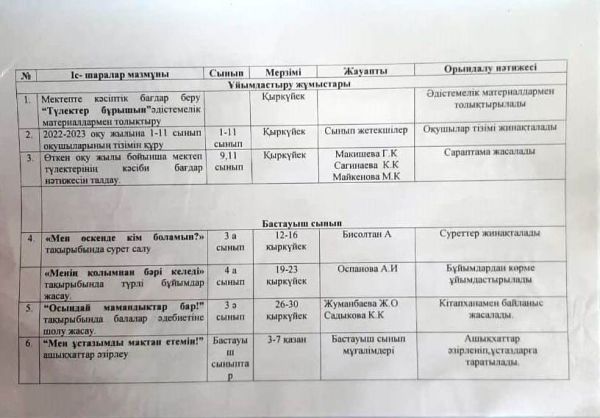 2023/2024 оқу жылына арналған оқу-тәрбие жұмысының жоспары