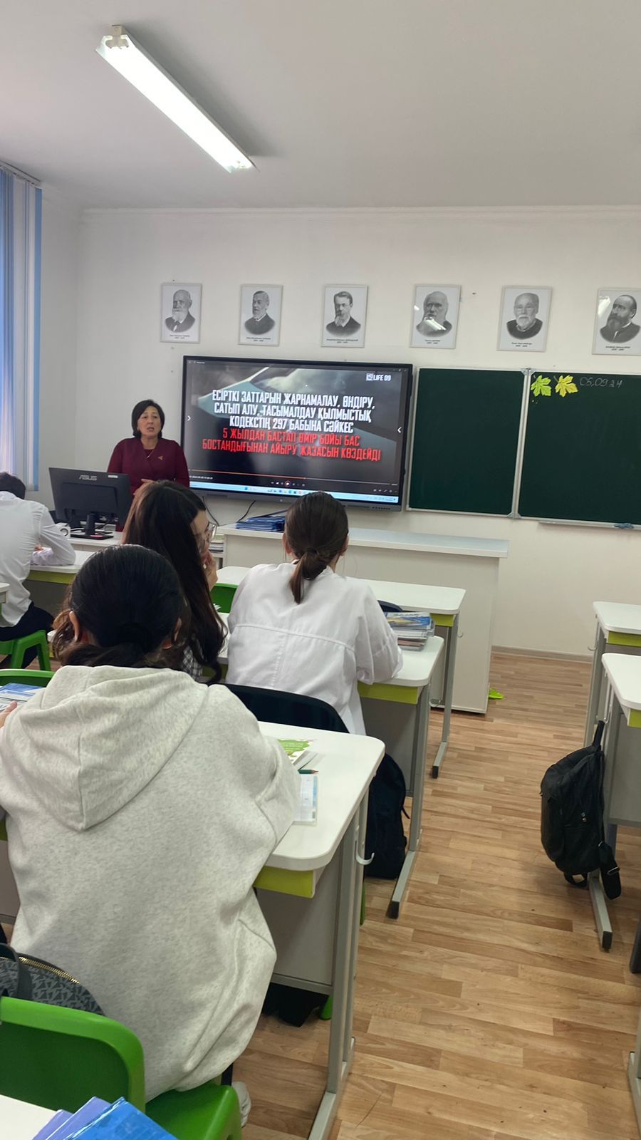 "Нашақорлыққа жол жоқ", "Есірткі-ХХІ ғасырдың дерті" тақырыбында бейнебаян көрсетіліп талқыланып, түсіндіру және кеңес жұмыстары жүргізілді