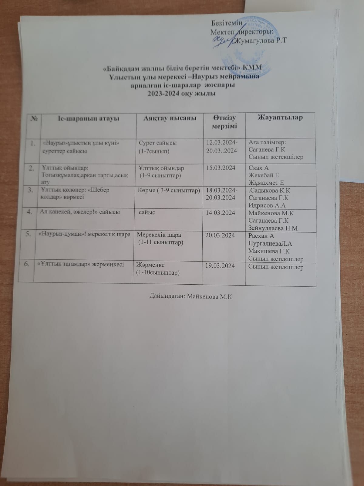 Ұлыстың ұлы мерекесі - Наурыз мейрамына арналған іс-шара жоспары