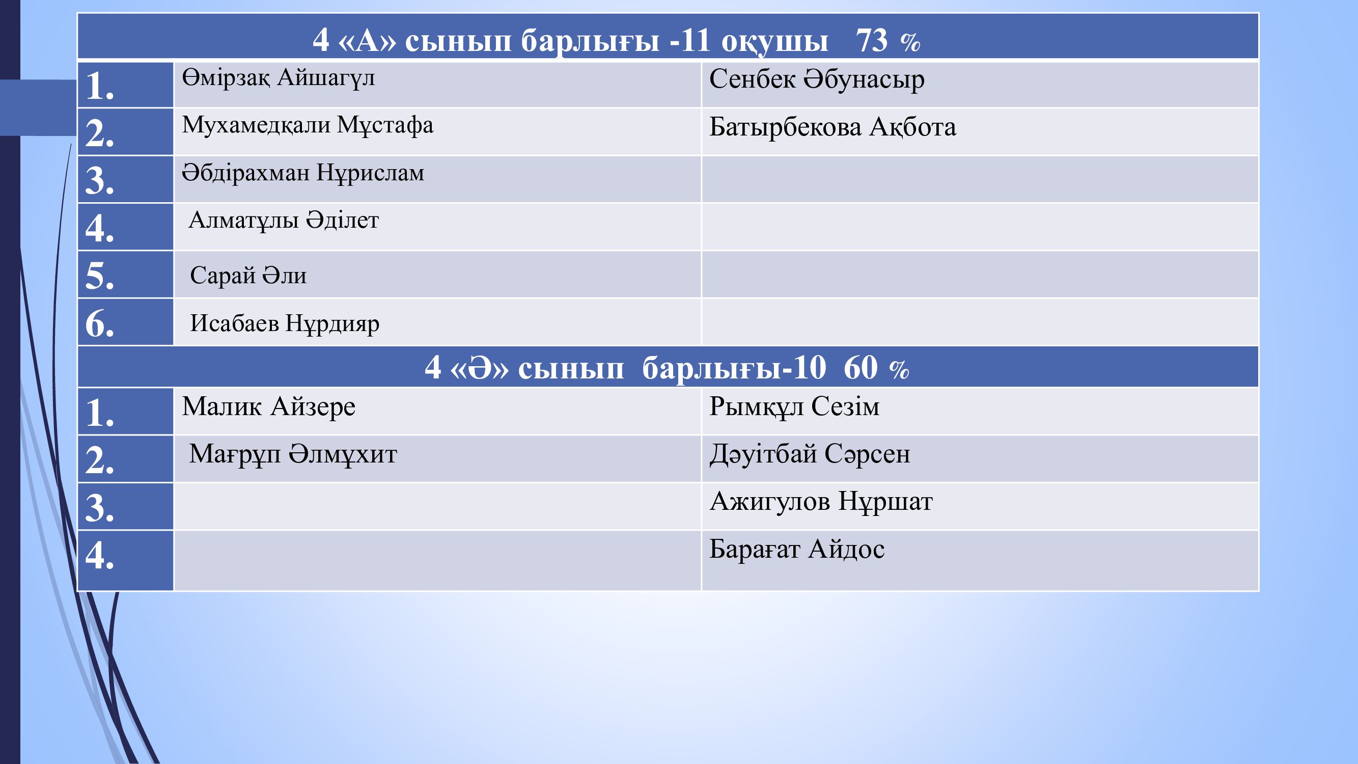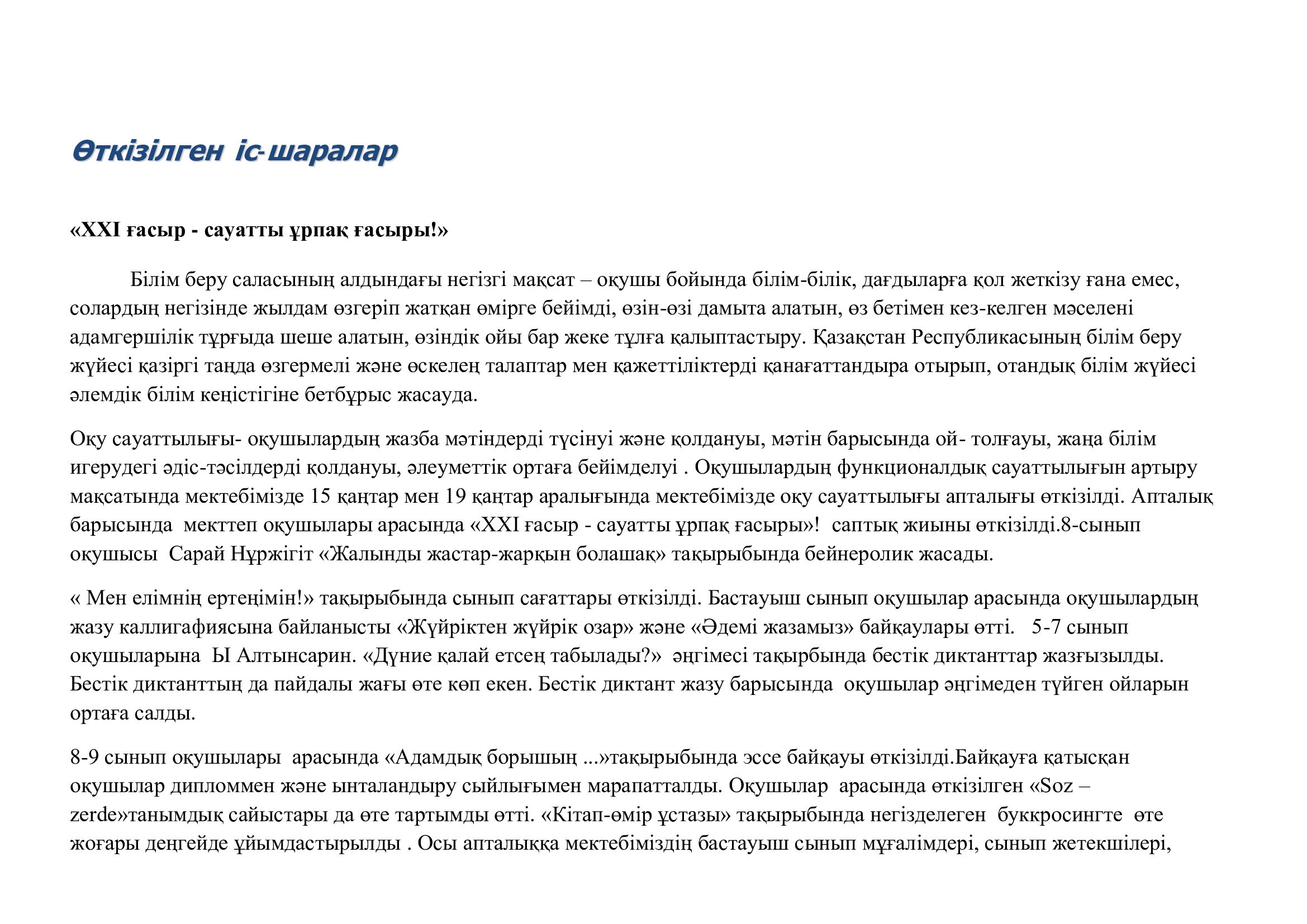 1.Оқушылардың ақпан айындағы ҰБТ бойынша тестілеу нәтижелері