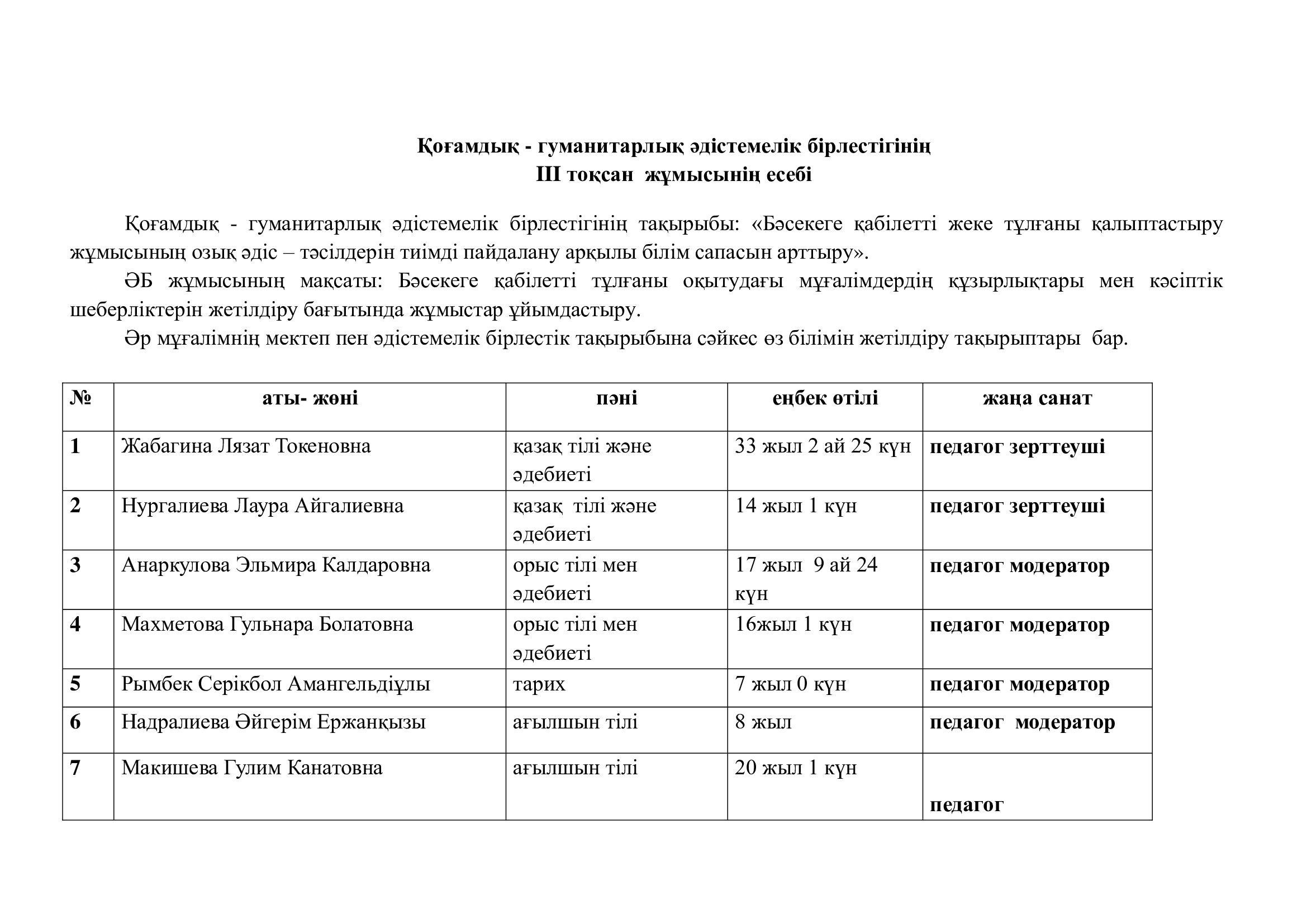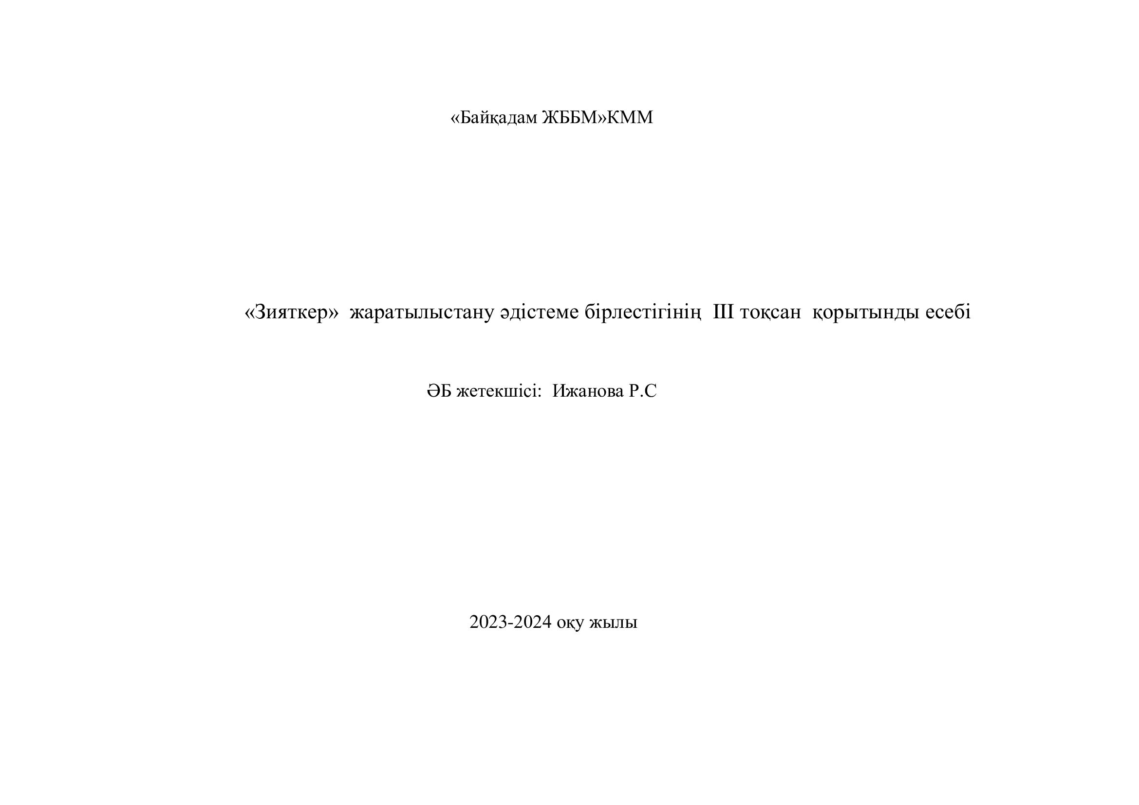 «Байқадам ЖББМ» КММ «Таным » бастауыш әдістеме бірлестігінің3 тоқсан қорытынды есебі