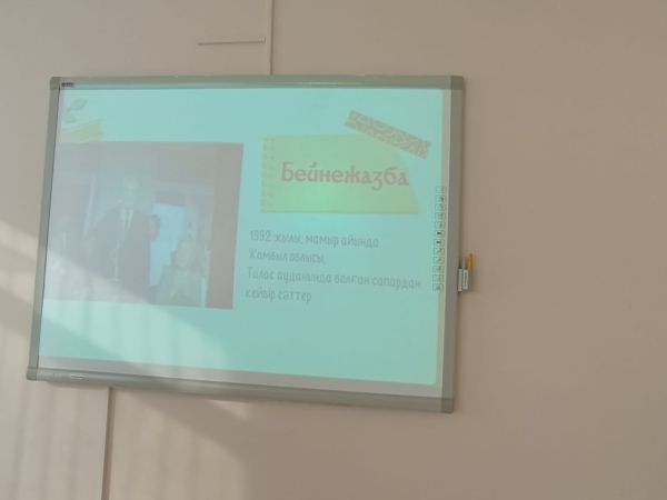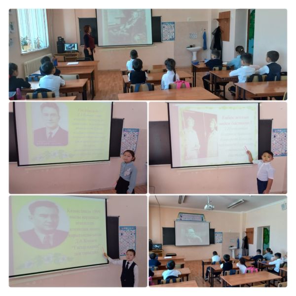 2"Ә" сынып оқушылармен Дінмұхаммед Қоневтың туғанына-110 жыл. "Мақтан тұтар-ұлы тұлға" сынып сағаты.