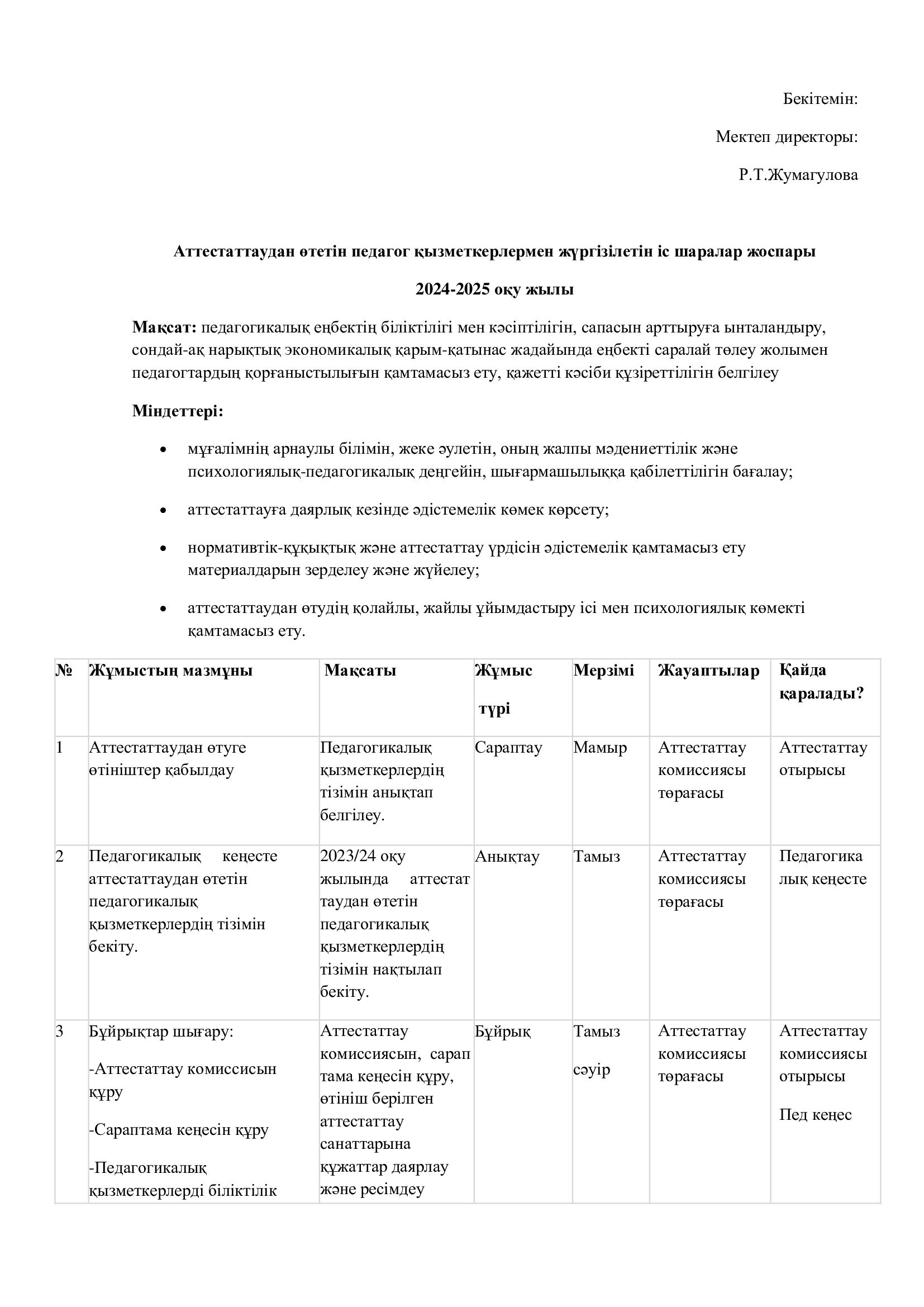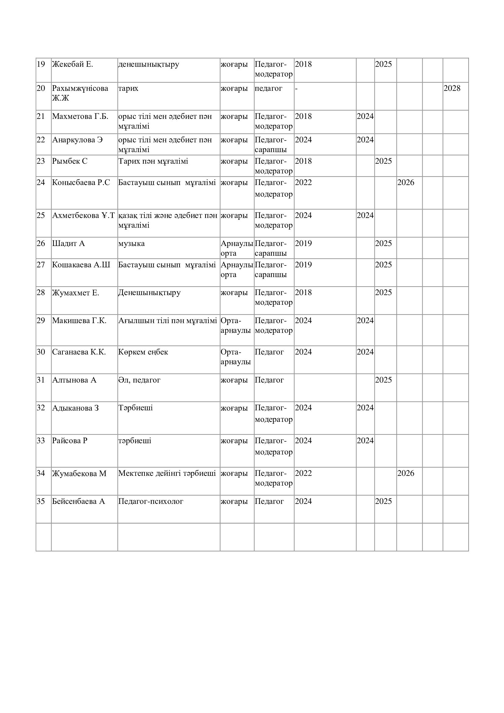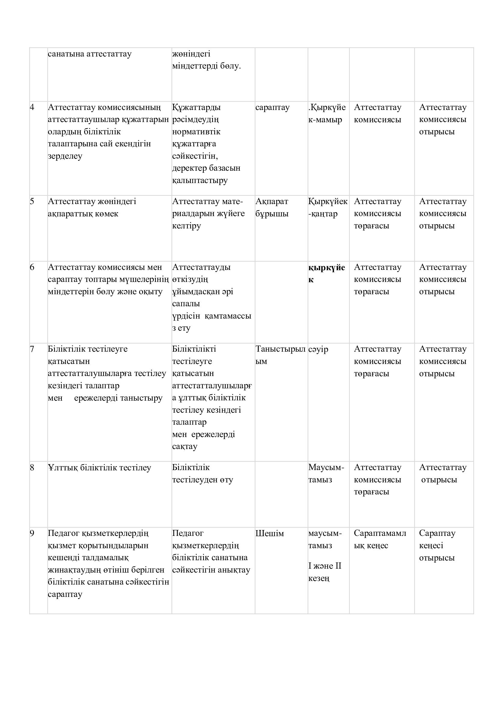 Педагогикалық қызметкерлерді аттестаттаудың алдын ала өту жоспары