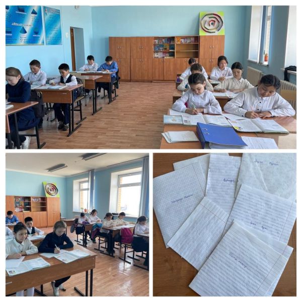 03.04.2023г. В "Байкадамской ОШ" в неделе" XXI век- век грамотного поколения" был проведён "День грамматического письма и грамотности" учащиеся в 8-9 классов писали дик…