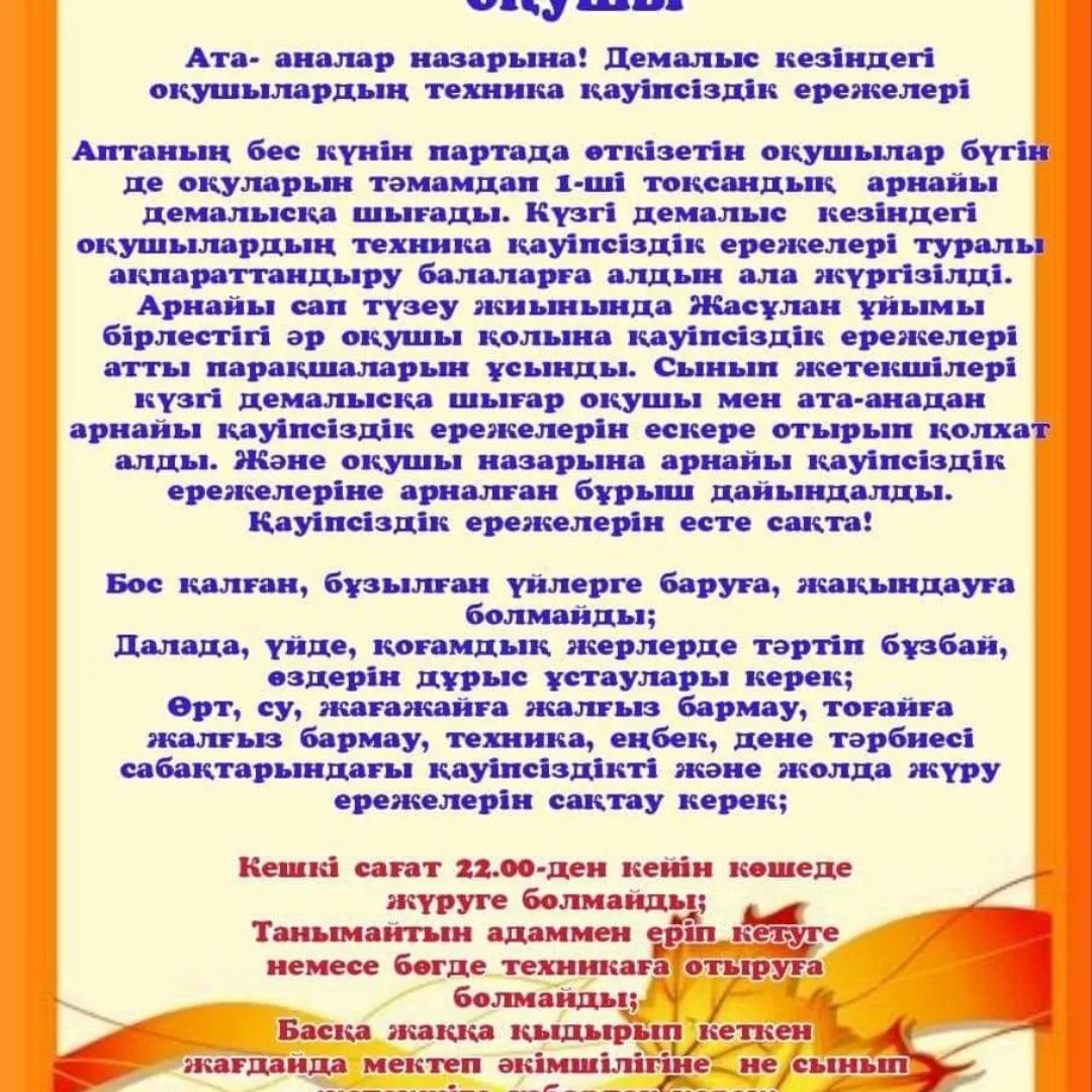 Күзгі демалыс кезіндегі қауіпсіздік ережелері