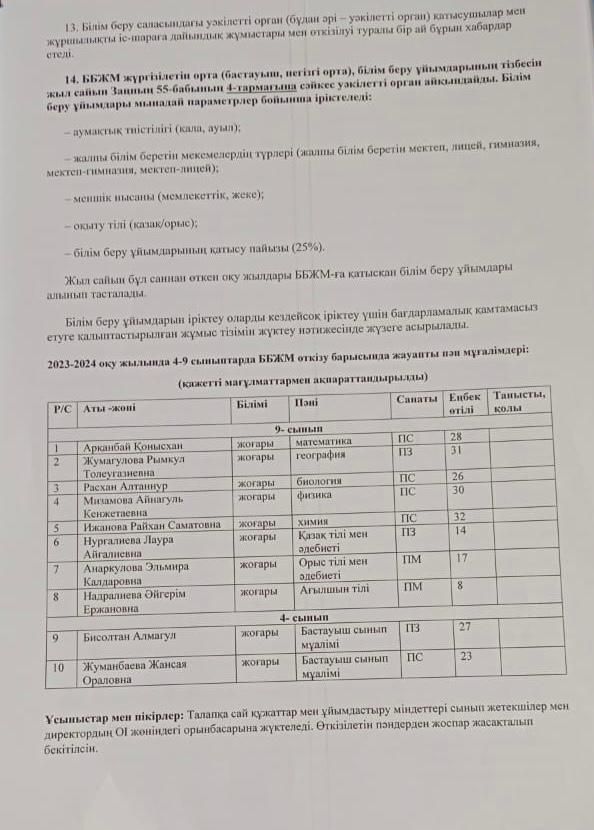 2023-2024 оқу жылының ББЖМ-ге дайындық және іс-шаралар жоспары