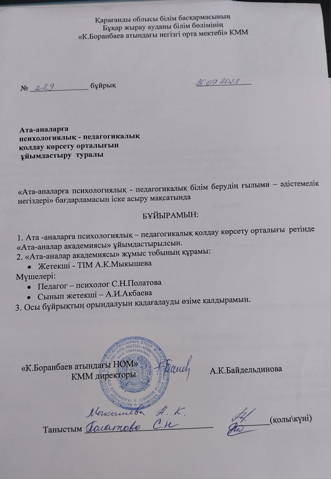 КГУ "Основная средняя школа имени К.Боранбаева"