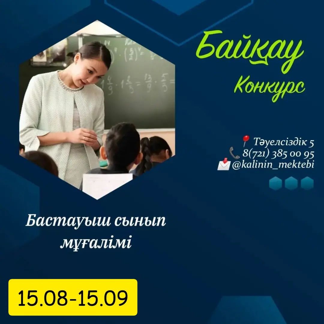"Калинин ЖББМ" КММ «Бұқар жырау ауданы білім бөлімі» мемлекеттік мекемесімен бірлесе отырып, келесі лауазым бойынша бос орынға орналасуға конкурс жариялайды: