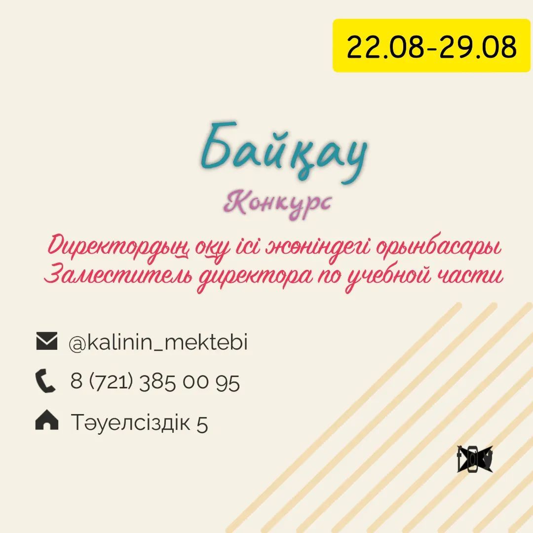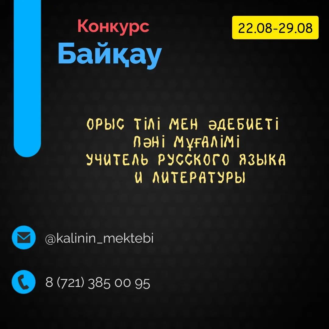 "Калинин ЖББМ" КММ «Бұқар жырау ауданы білім бөлімі» мемлекеттік мекемесімен бірлесе отырып, келесі лауазым бойынша бос орынға орналасуға конкурс жариялайды:…