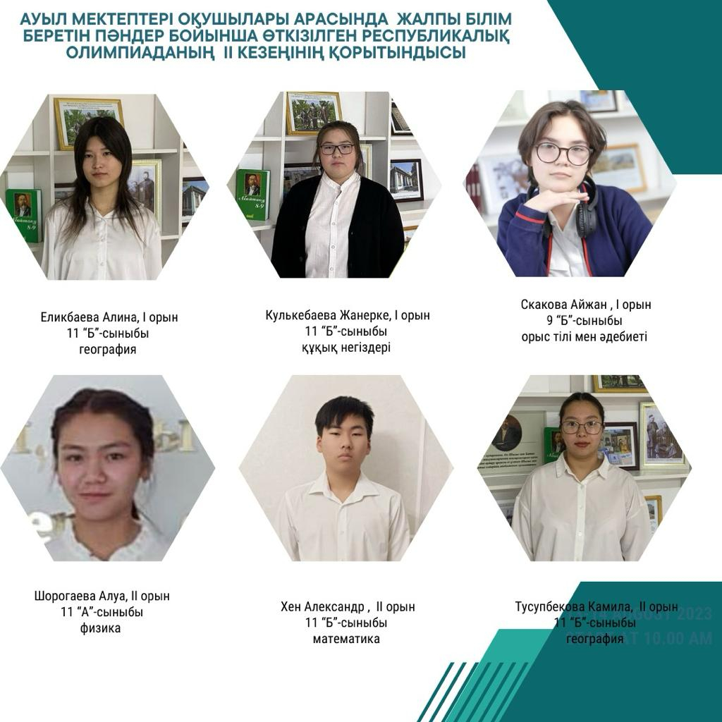 2023 жылдың желтоқсан айында ауыл мектептері оқушылары арасында жалпы білім беретін пәндер бойынша өткізілетін республикалық олимпиаданың облыстық кезеңі өткізілді. Мектебімізден а…