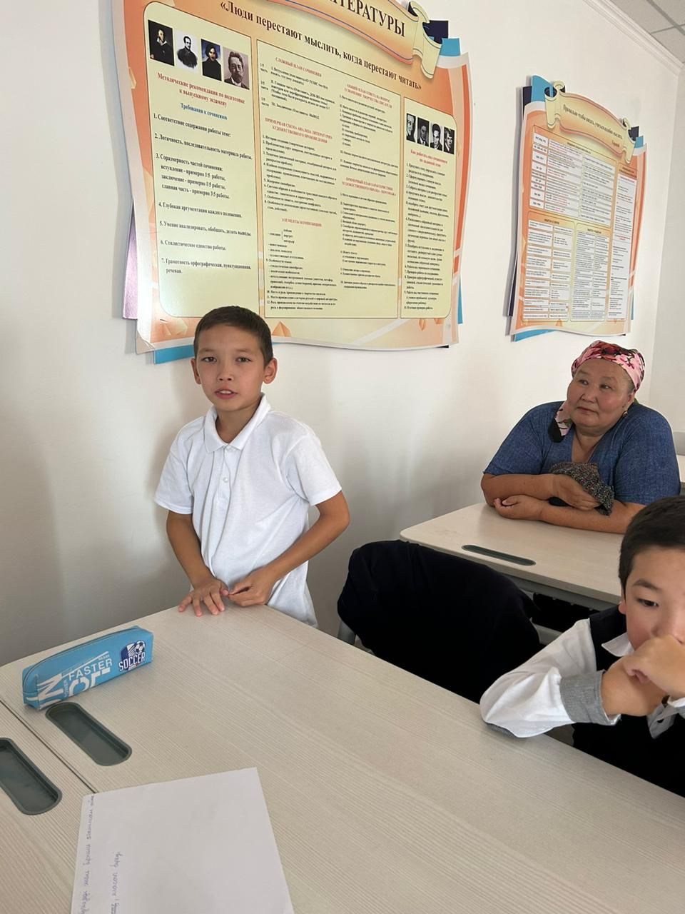 Мағжан Жұмабаев атындағы жалпы білім беретін мектебінің 5 "А" сынып оқушысы Бейсенов Қуандық-Шираз ата-әжесімен бірге.