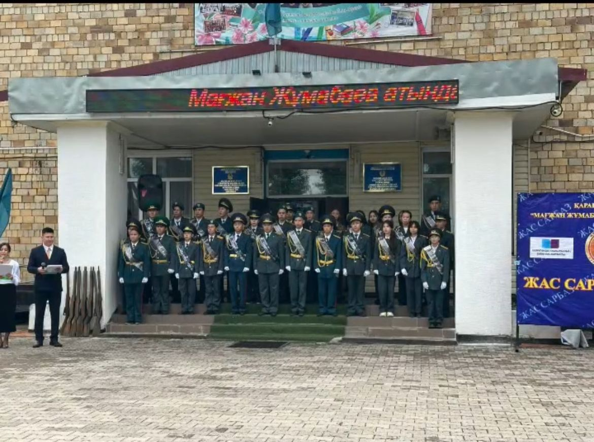 12 маусым күні М.Жұмабаев атындағы жалпы білім беретін мектеп-гимназиясының 9-сыныпты аяқтаған “Жас Сарбаз” сыныбының оқушылары аттестат алып, м…