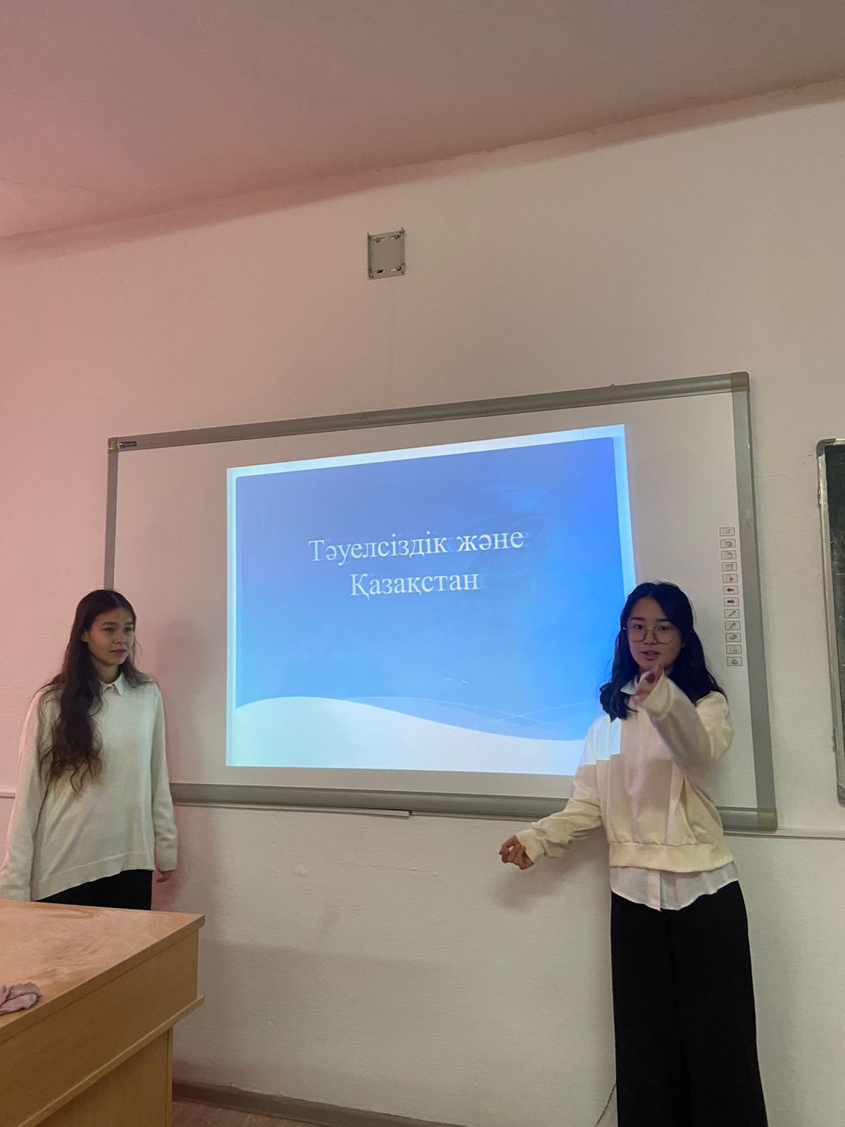 Бүгін, 9 "Ә" сынып оқушылары, жетекшісі Қ. А. Тулеубекова оқушыларымен бірге "Тәуелсіздік рух тірегі" тақырыбында сынып сағатын өткізді. Сынып сағатында оқушыларымыз "Тәу…