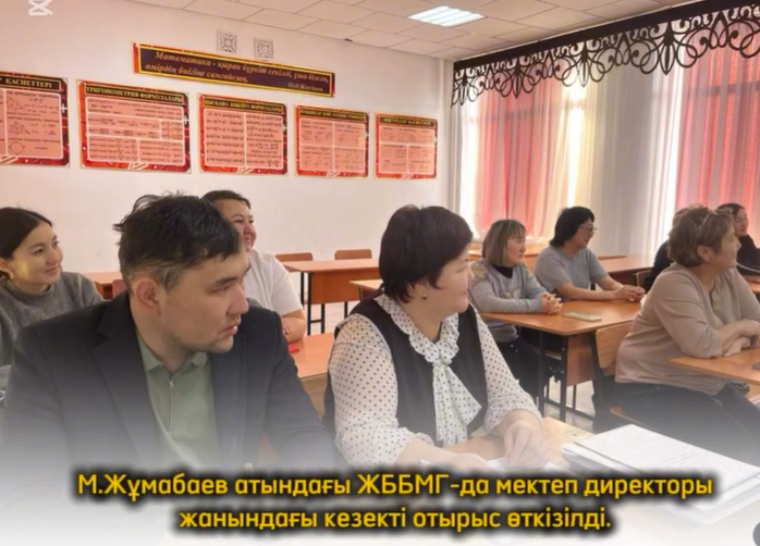 М.Жұмабаев атындағы жалпы білім беретін мектеп-гимназиясында мектеп директоры жанындағы кезекті отырыс өткізілді. Отырыстың негізгі мақсаты – оқу-тәрбие процесінің сапасын арттыру, өзекті мәсе…