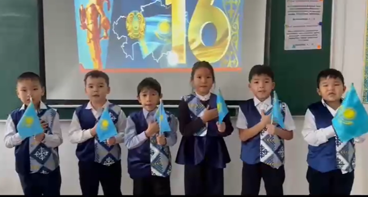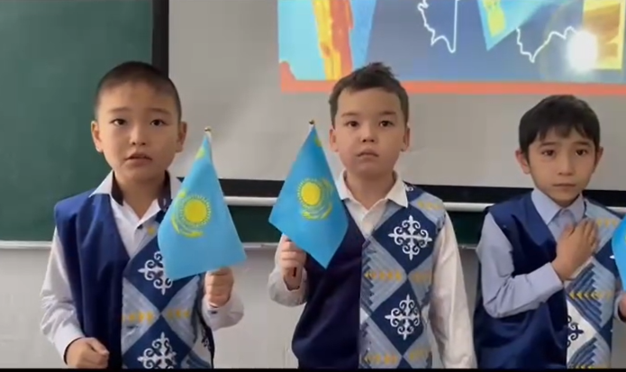 Оқушылар Отанға деген сүйіспеншіліктерін білдіріп, Қазақстанның Әнұранын шырқап, жылы тілектерін арна…