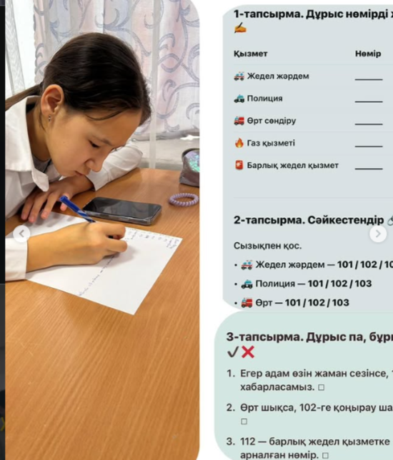 -и өтенше жағдайлар қызметі мен сенім телефондарының нөмірлерін қалай дұрыс пайдалану керектігін үйрету…
