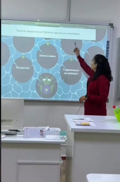 Алғашқы сабақты мұғалім Жанаөмірова Сағыныш Жақсылыққызы «Сұйықтар мен газдардағы қысым. Паскаль заңы» тақырыбында өткізді.