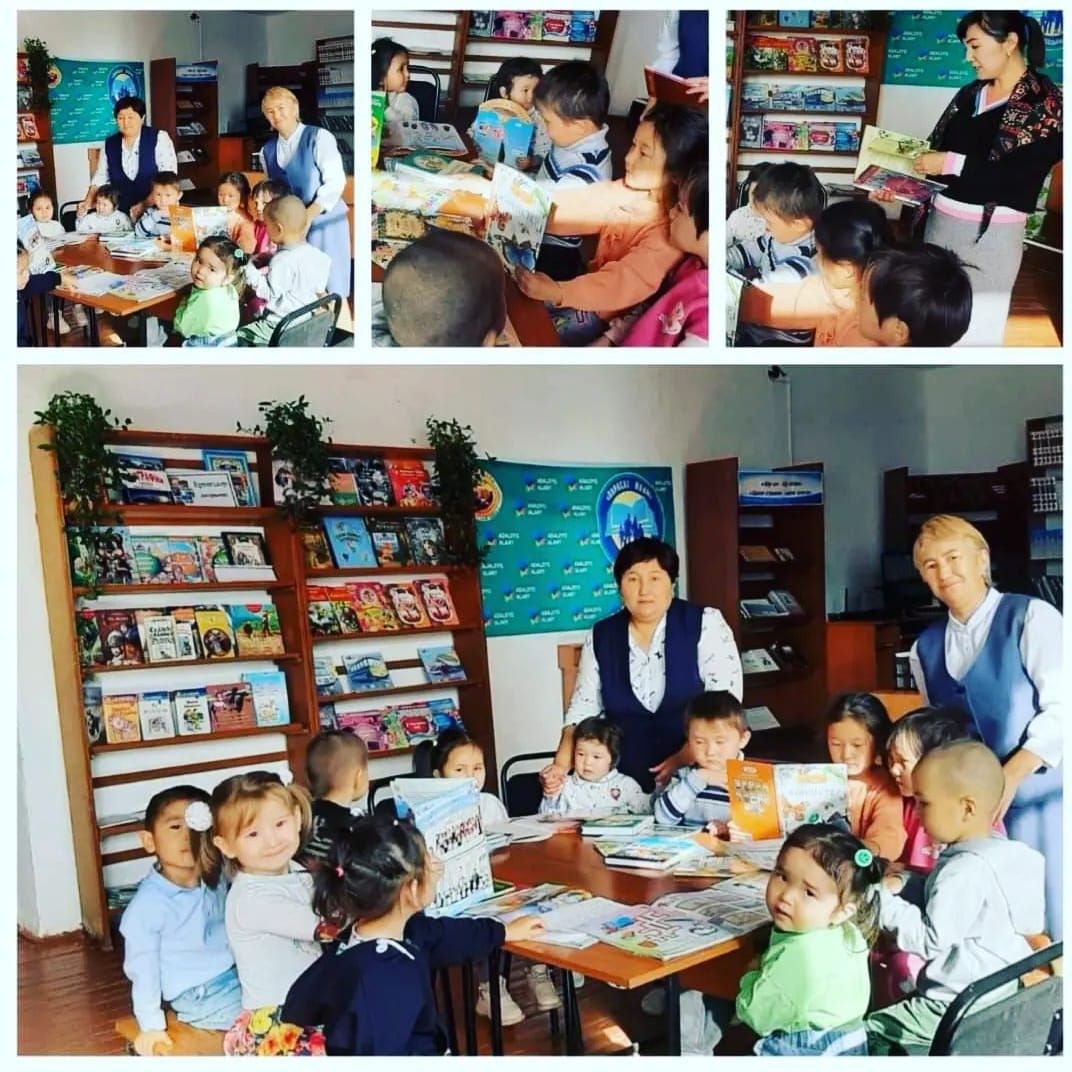 "Туған өлкеге серуен" апталықтың 2-ші күні. "Менің сүйікті қалам және ауылым" Бүлдіршіндер ауыл кітапханасына саяхаттап, кітаптарды қызықтау барысында "Шалқан" ертегісі…