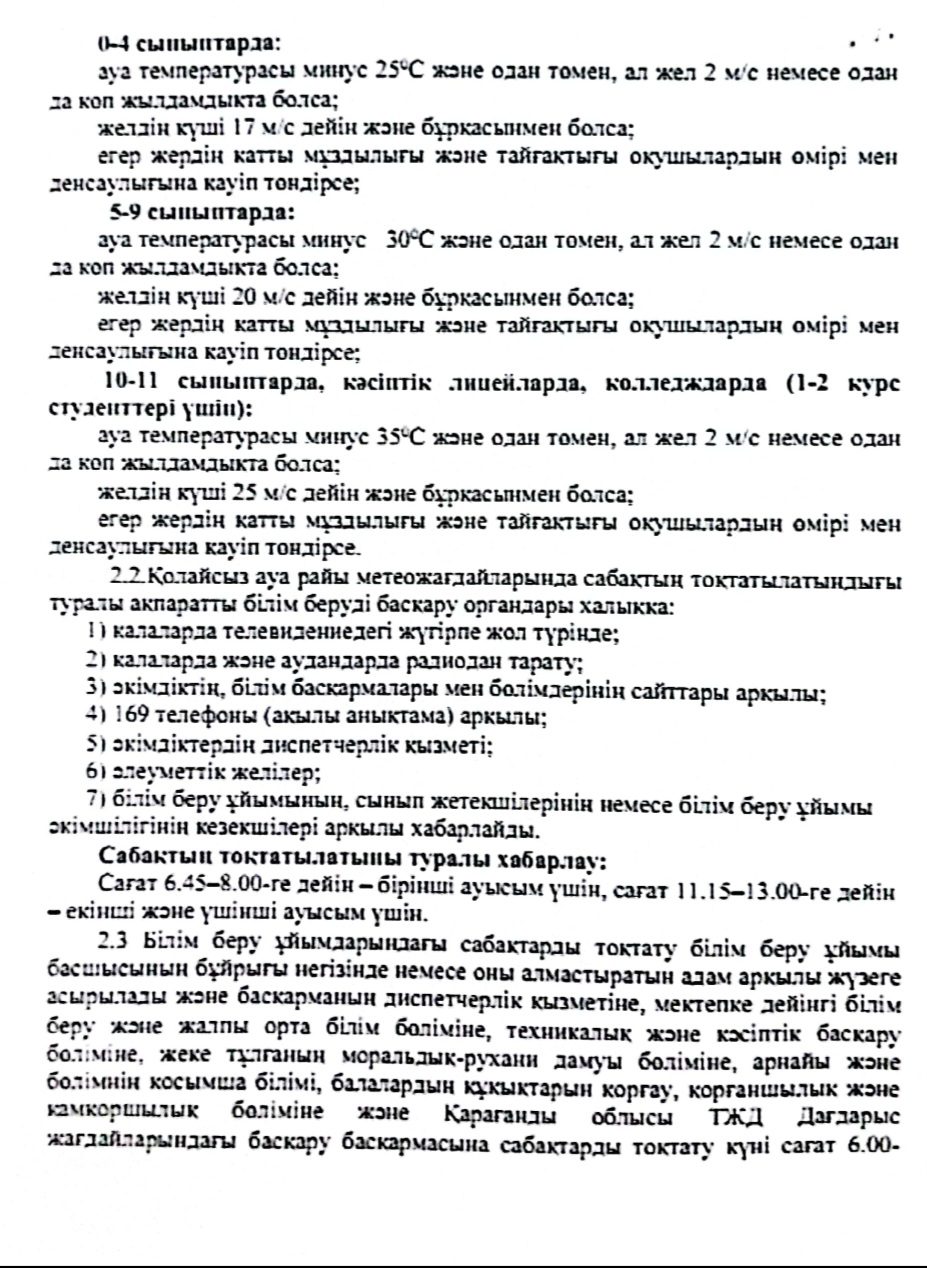 ҚҰРМЕТТІ АТА-АНАЛАР НАЗАРЫНА! Қолайсыз ауа райы жағдайында сабақтарды тоқтату туралы