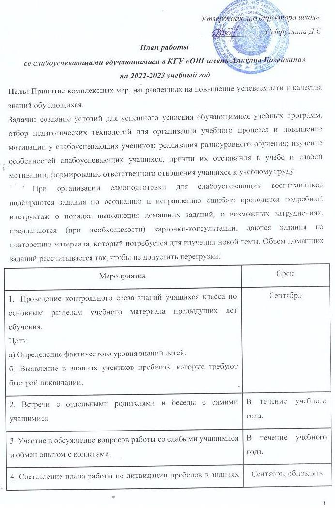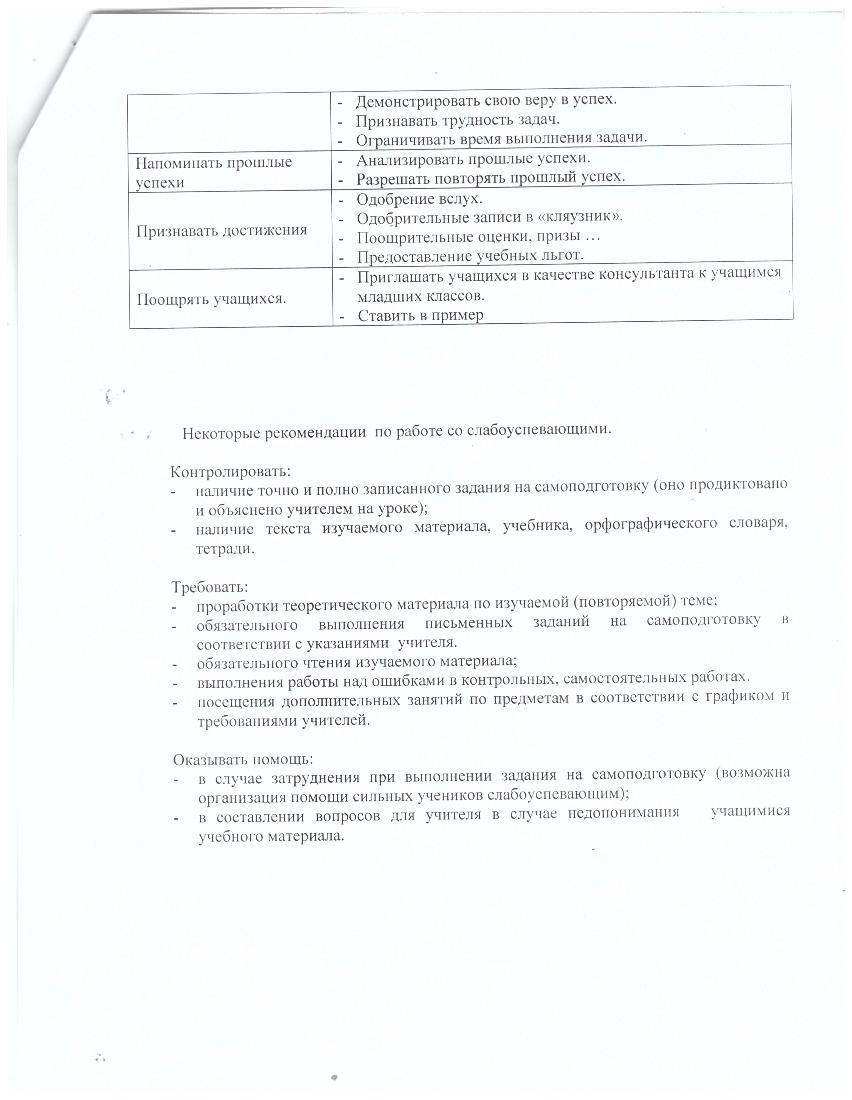 План работы со слабоуспевающими детьми