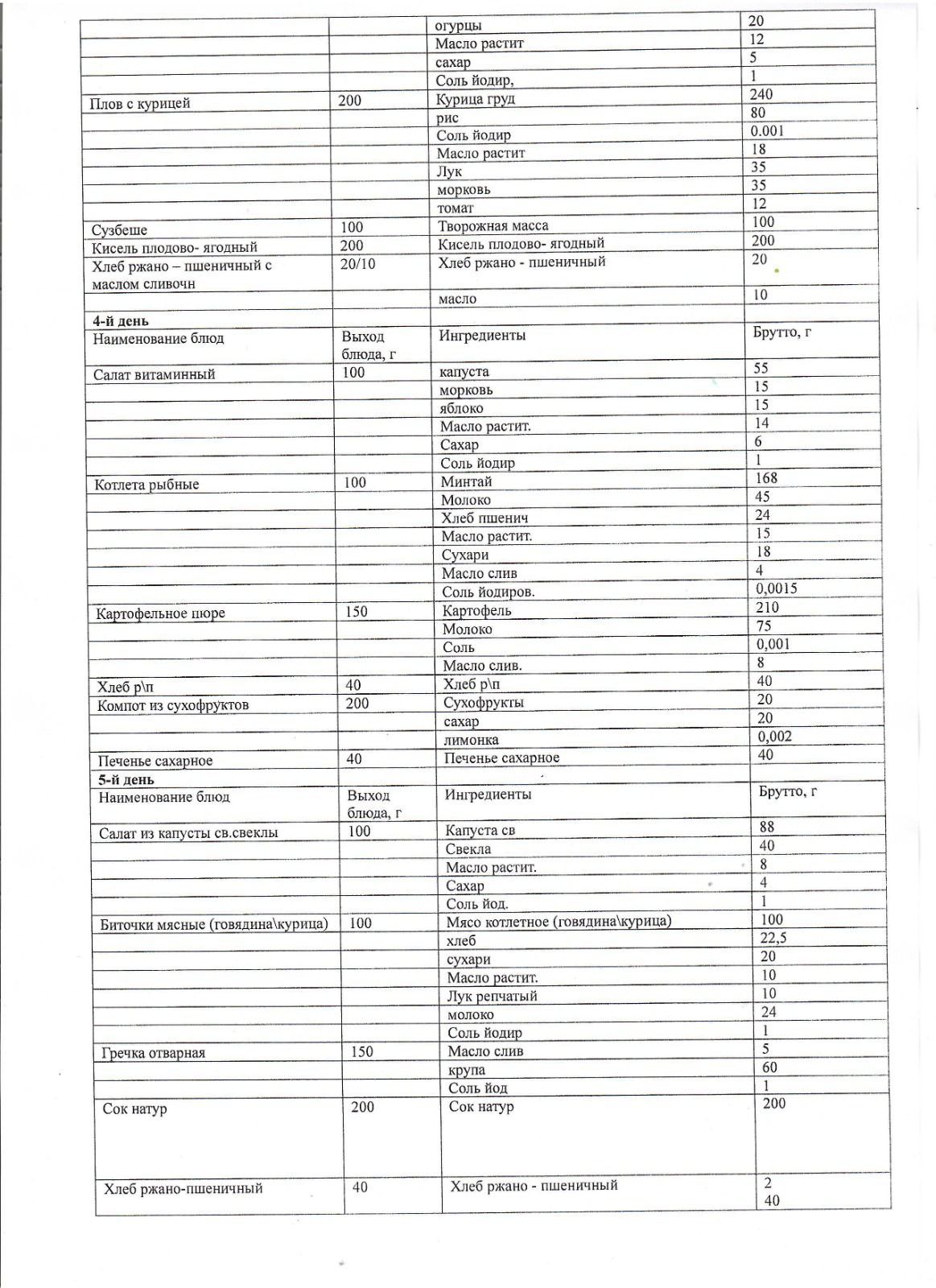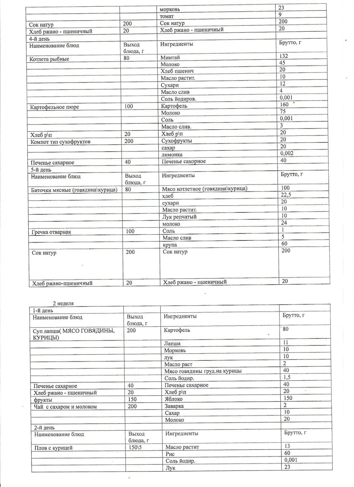 Перспективное двухнедельное меню блюд для организации питания учащихся начальных классов а также 5-11 классов в КГУ ОШ им Алихана Бокейхана
