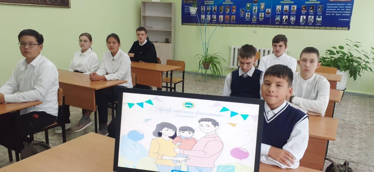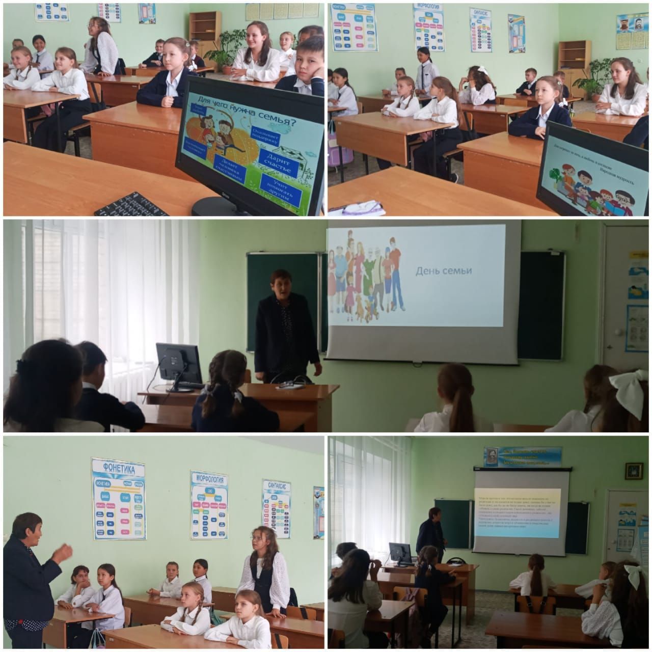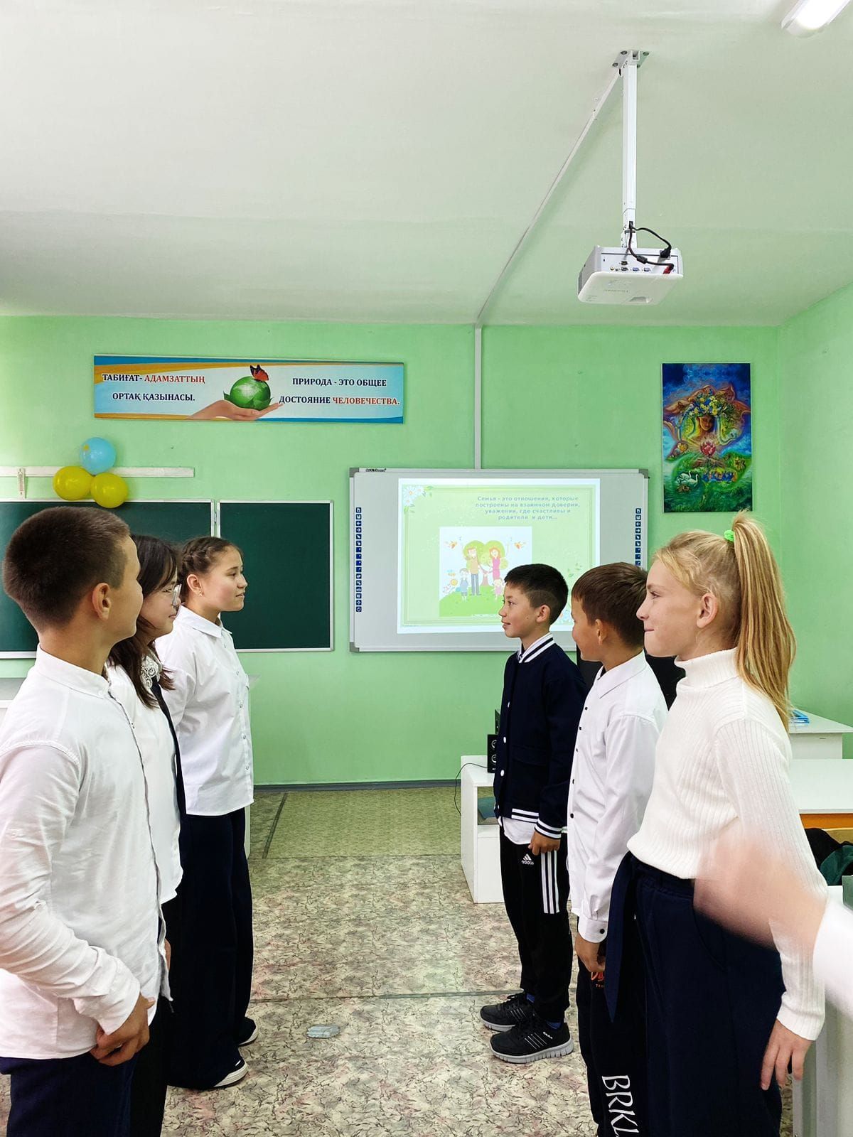 В ОШ имени А.Бокейхана 11.09.23 года в 5- 10кл был проведён классный час посвящённый Дню Семьи.