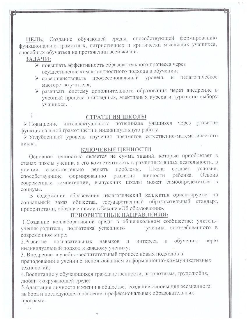 Цел: Создание обучающей среды, способствующей формированию функционально грамотных, патриотичных и критически мыслящих учащихся, способных обучаться на протяжений всей жизни