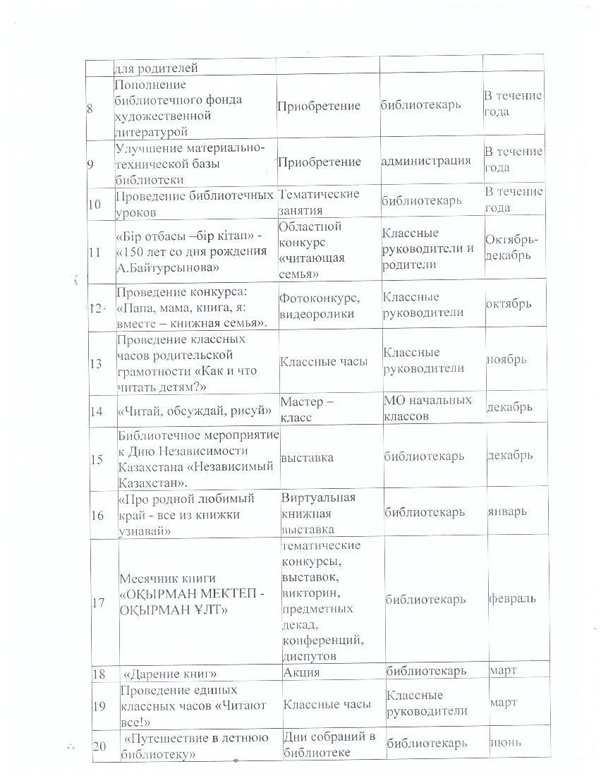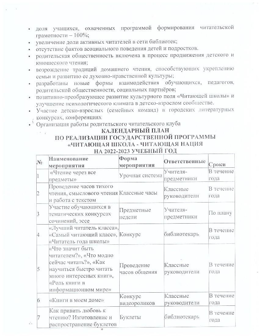 План работы по реализаций государственной программы "Читающая школа-читающая нация"