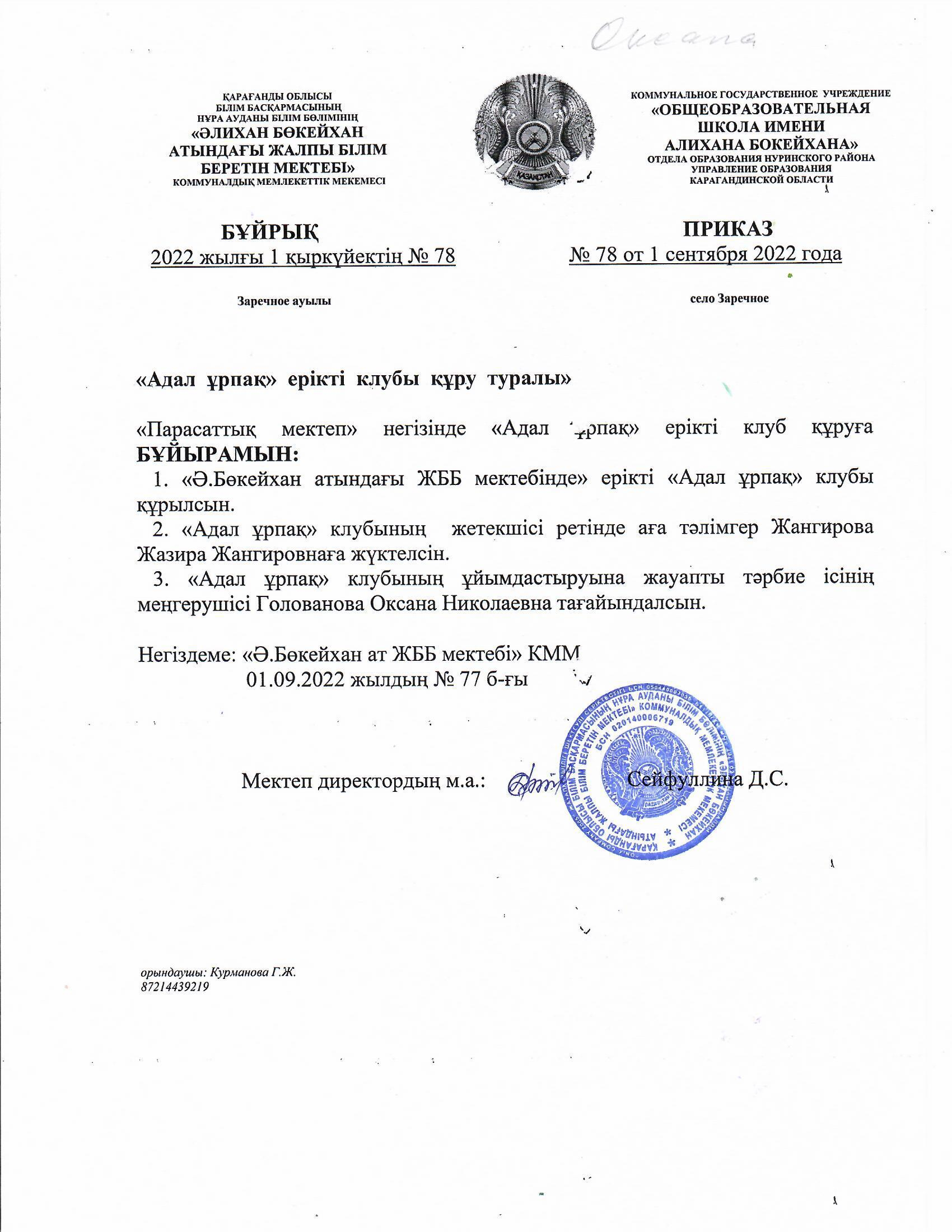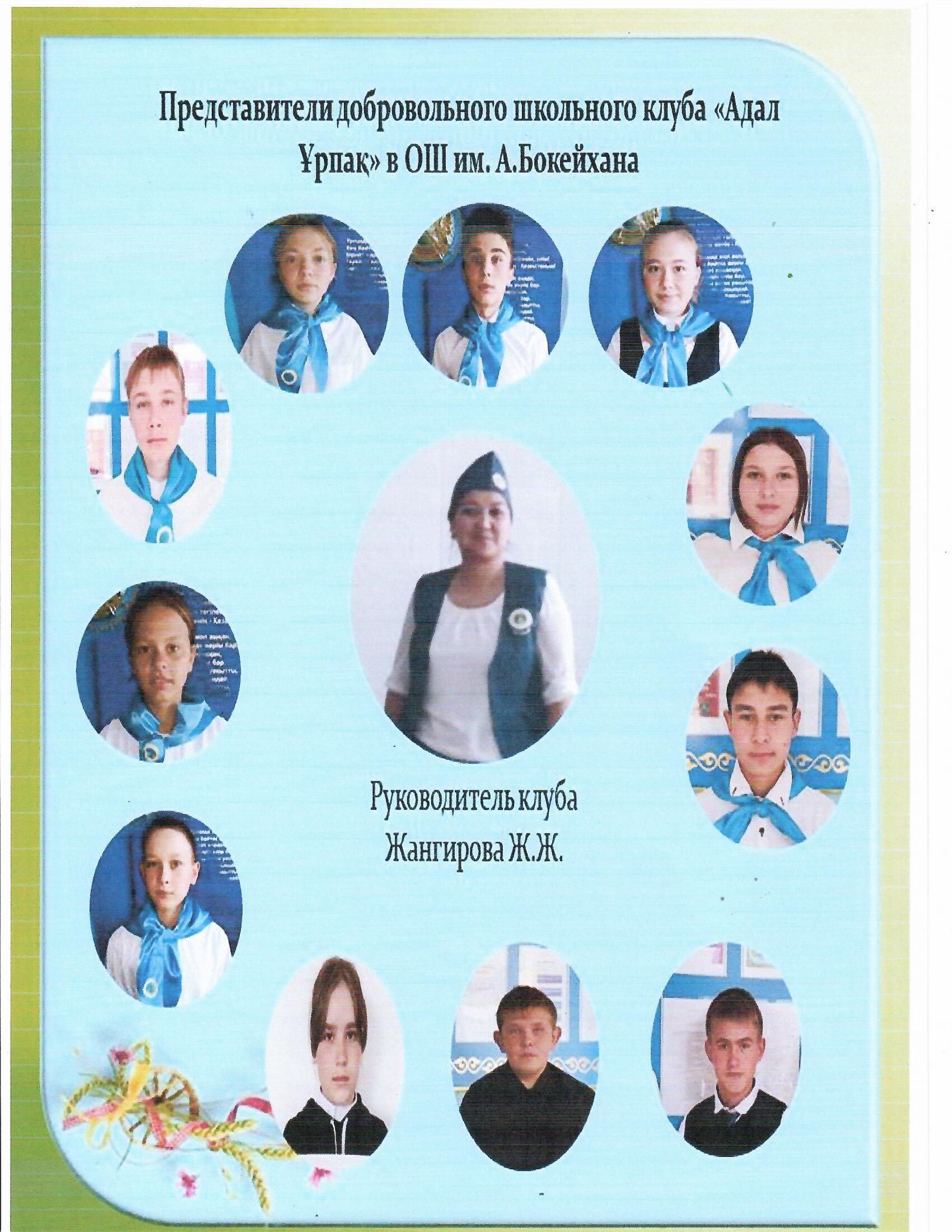 Представители добравольного школного клуба "Адал ұрпақ" в КГУ ОШ им Алихана Бокейхана