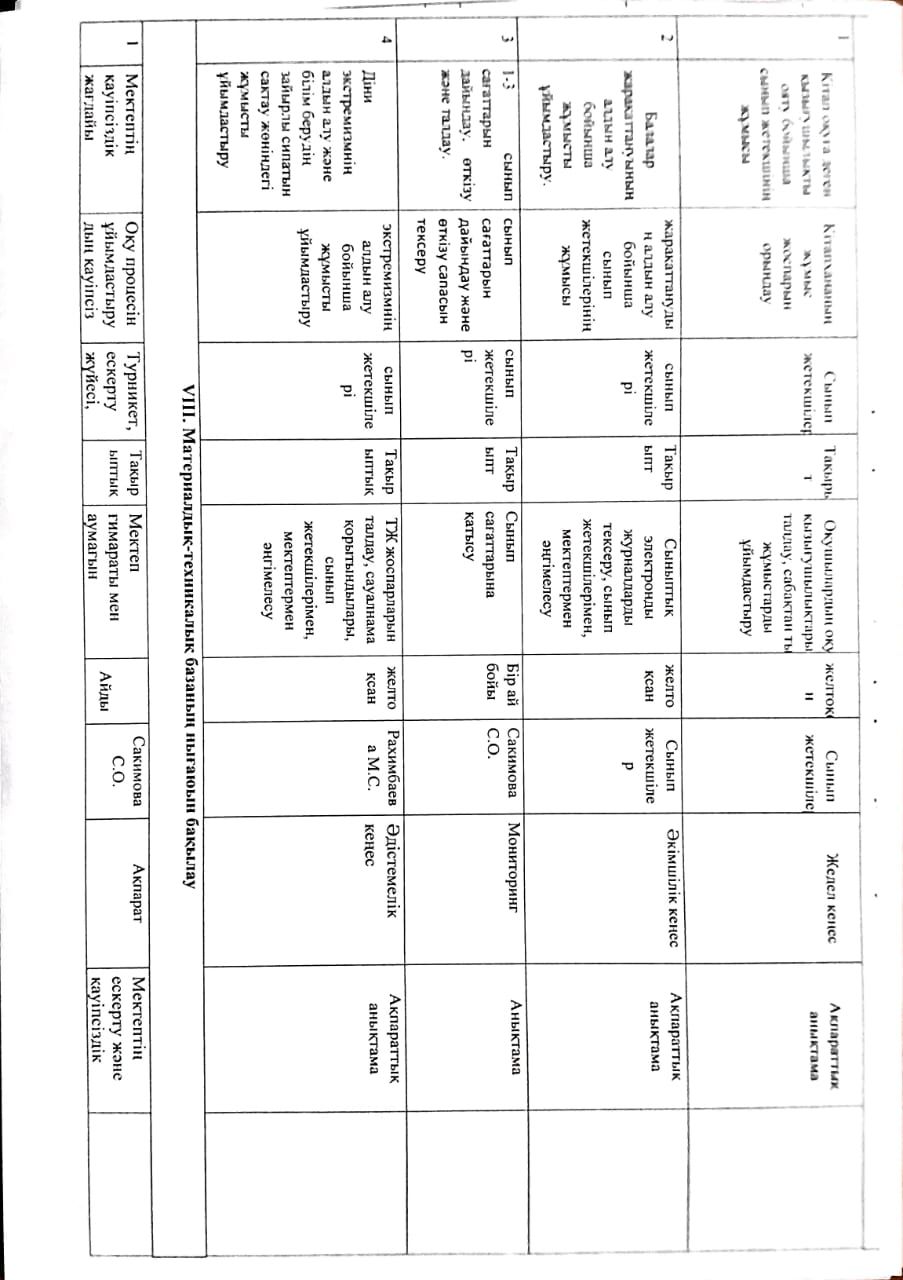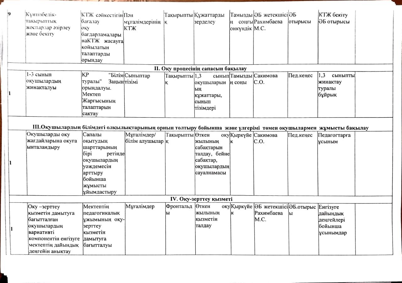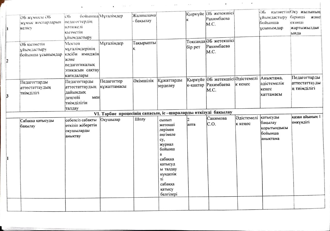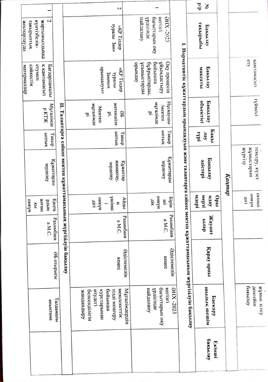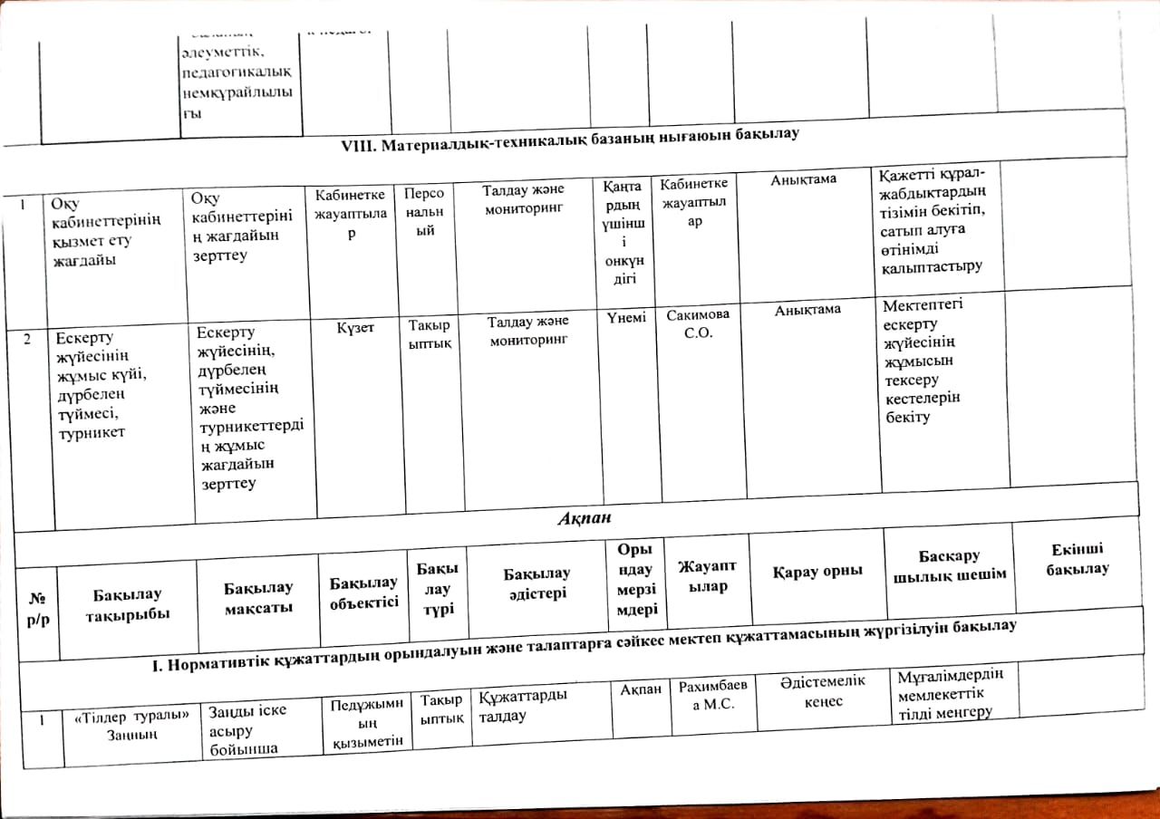 2023-2024 оқу жылына арналған Мектепшілік бақылау жоспары