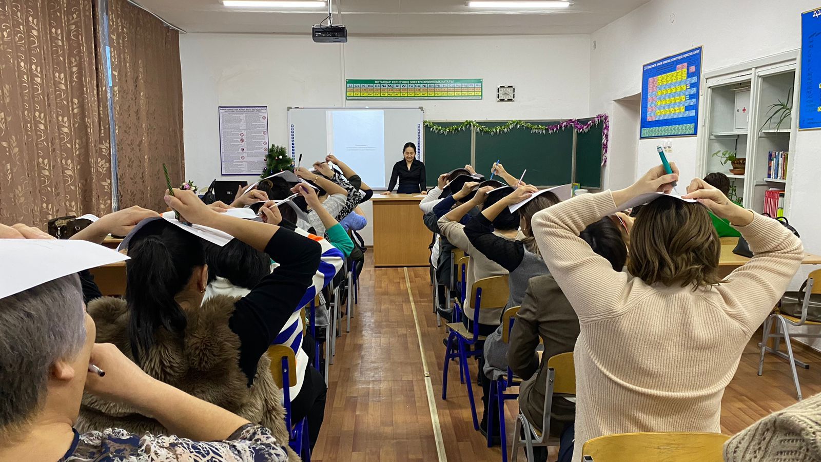 Педагогикалық кеңесте бірінші жарты жылдықты сәтті қорытындылап, ұстаздарға жаңа жыл алды көтеріңкі көңіл -күй сыйлау мақсатында тренинг өткізілді. Тақырыбы: «Көңілі көтеріңкі ұстаздың, еңбегі…