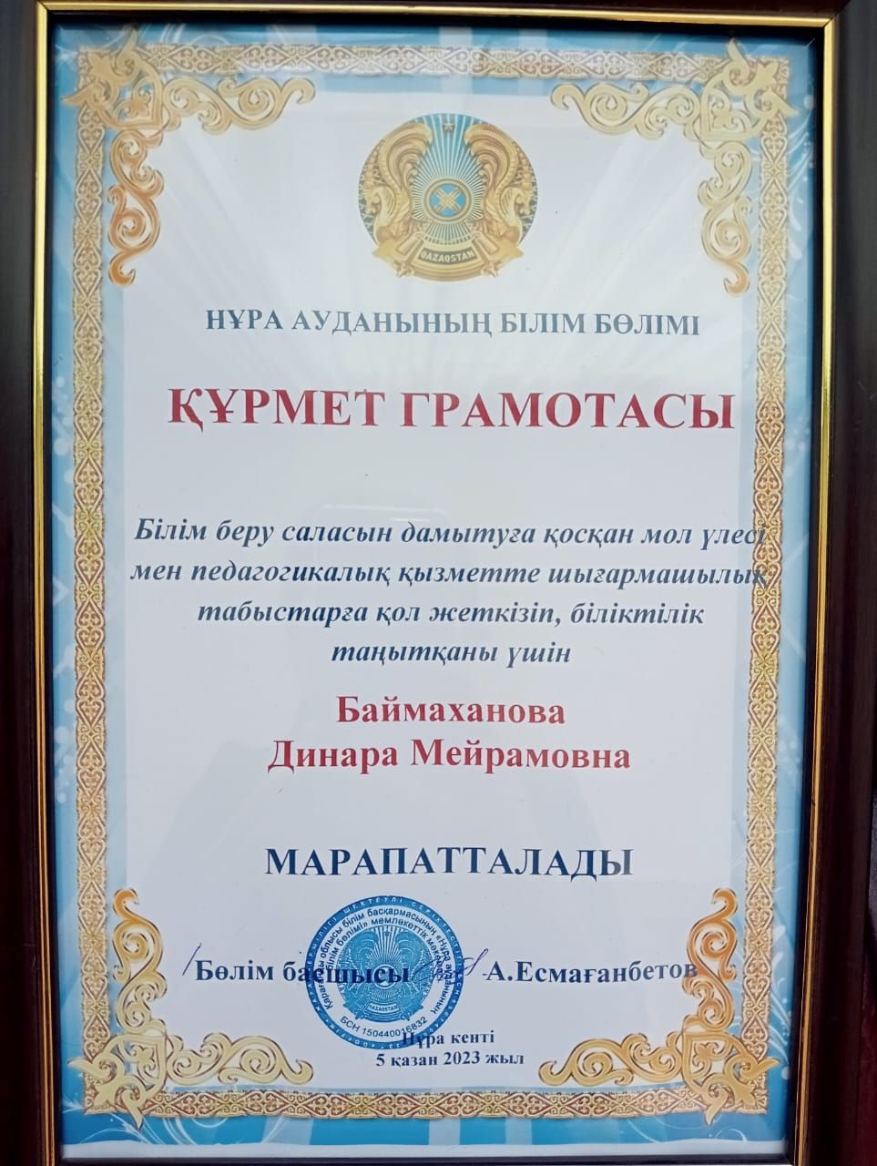 Дәмеш Гүлназ "Эссе жазу" номинациясынан 2-орын, жетекшісі: Мукано…