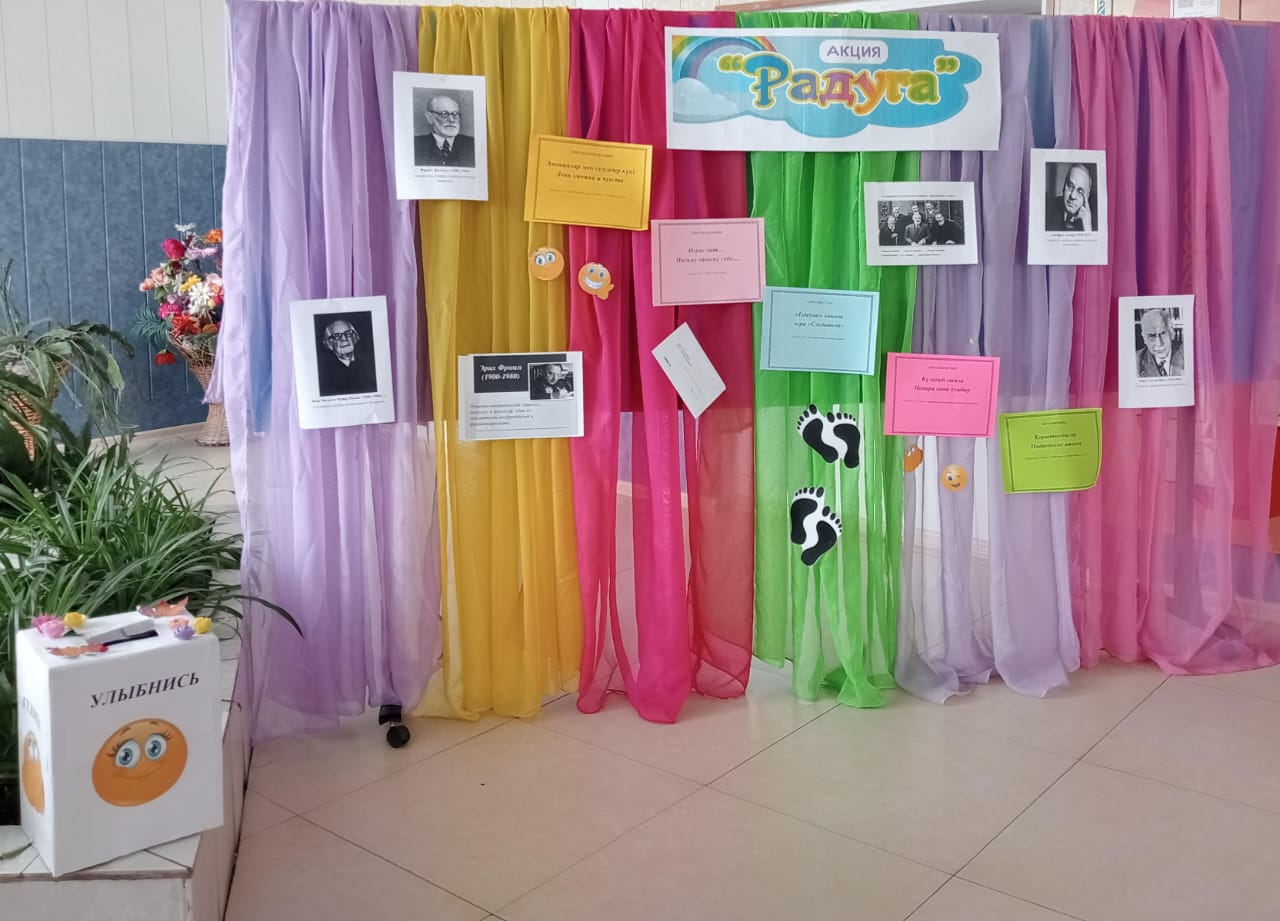 Психологиялық сауықтыру апталығының аясында мектебімізде «Кемпірқосақ» акциясы өз бастауын алды. Ақция мақсаты: мектеп оқушыларына психологиялық-педагогикалық қолдау көрсетіп, олардың өм…